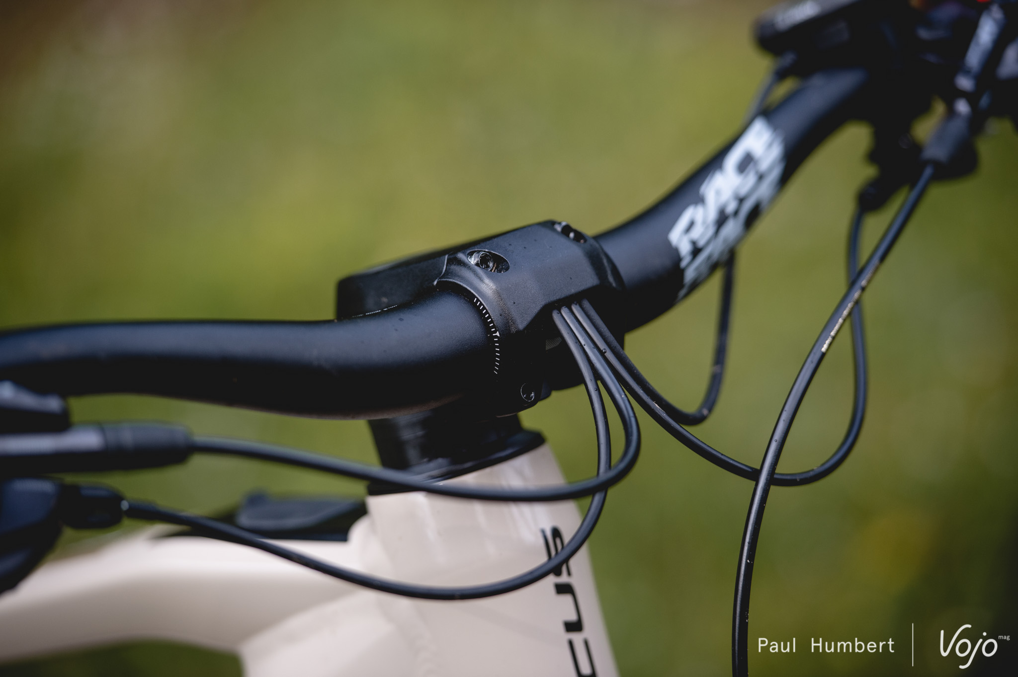 L’élément visuel le plus propre aux Focus a été présenté sur tous les VTTAE 2021 et on le retrouve assez logiquement sur ce nouveau vélo : la potence qui intègre tous les câbles et gaines. Baptisée C.I.S (pour cockpit integrated system), elle mesure 50mm de long sur toutes les tailles et on a pu assister à son installation. La solution optimale reste d’avoir le coup de main et un peu d’aide, mais l’ensemble reste accessible à qui souhaite bricoler sur son vélo.