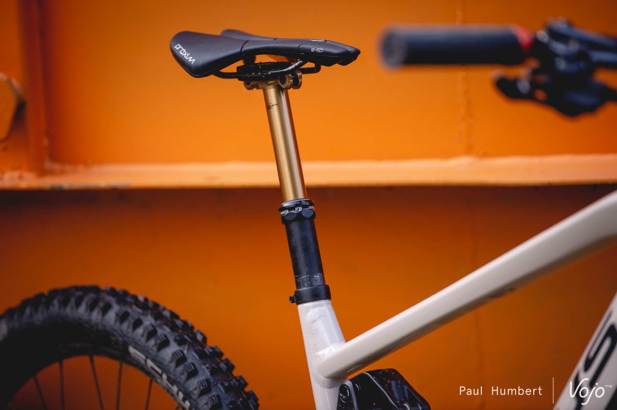 Côté assise, on retrouve d’abord la tige de selle Fox Transfer RL à grand débattement sur notre taille L, ce qui est apprécié. Elle est combinée à un levier KS qui est, lui, assez mal intégré au poste de pilotage. C’est d’ailleurs un élément qui sera corrigé par Focus dans les prochaines semaines (même si les premiers vélos seront peut-être livrés dans cette configuration).