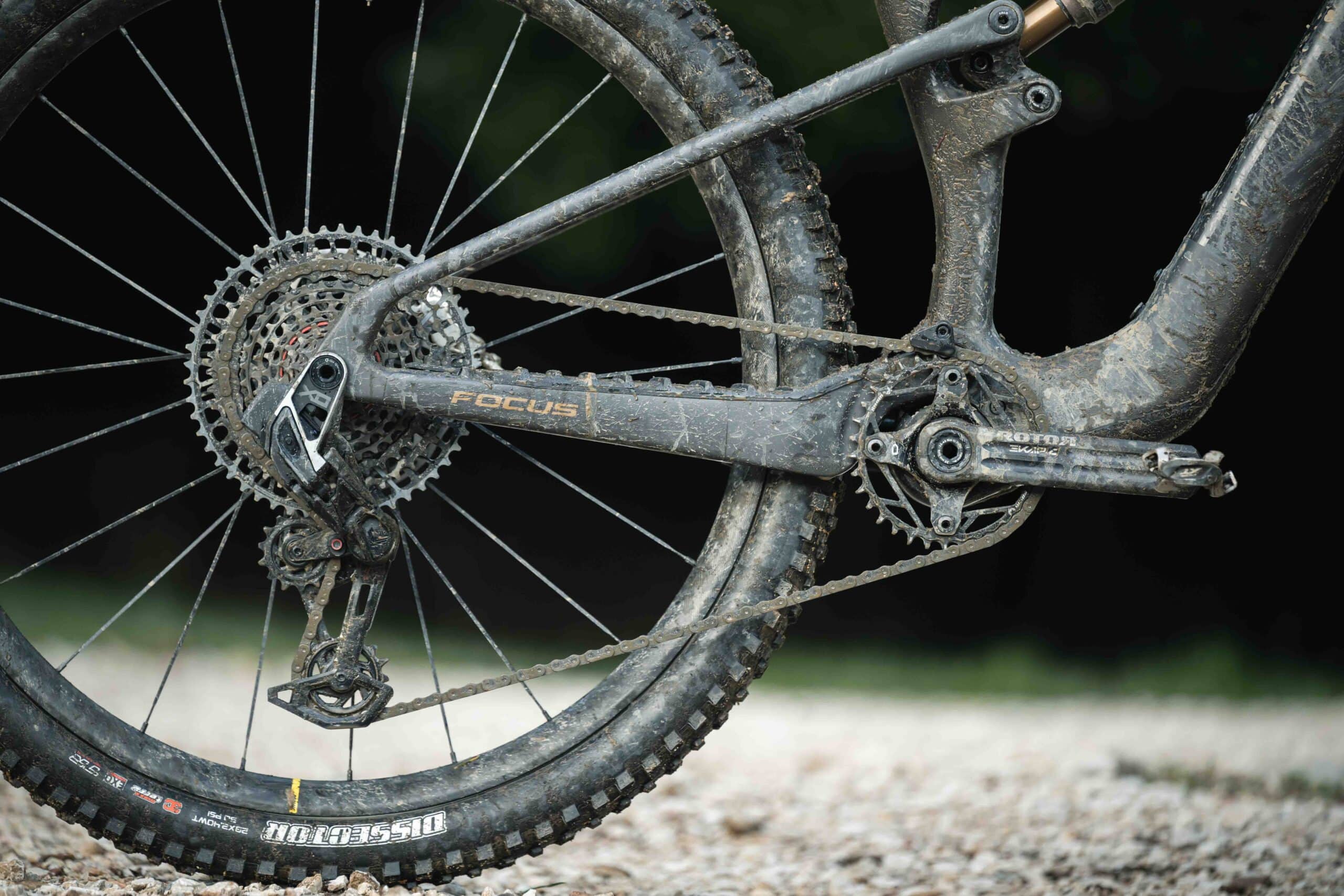 Sur notre modèle de test, Fox s’occupe des suspensions avec un amortisseur Float Factory développant 125 mm de débattement, et une fourche 34 Grip2 Factory de 130 mm. Focus a travaillé avec le fabricant américain pour offrir à sa suspension des réglages personnalisés à la cinématique de son modèle. « Si tu jettes un coup d’oeil, tu apercevras que le passage pour le câble de blocage au guidon est prévu dans le cadre. Ça a été un questionnement lors du développement du vélo. Finalement, nous estimons que la cinématique est assez bonne en montée que pour se passer d’une commande au guidon. Nous n’en avons jamais ressenti le besoin lors de l’ensemble de nos tests avant la commercialisation », explique la marque lorsqu’on la questionne sur l’absence de commande au guidon.