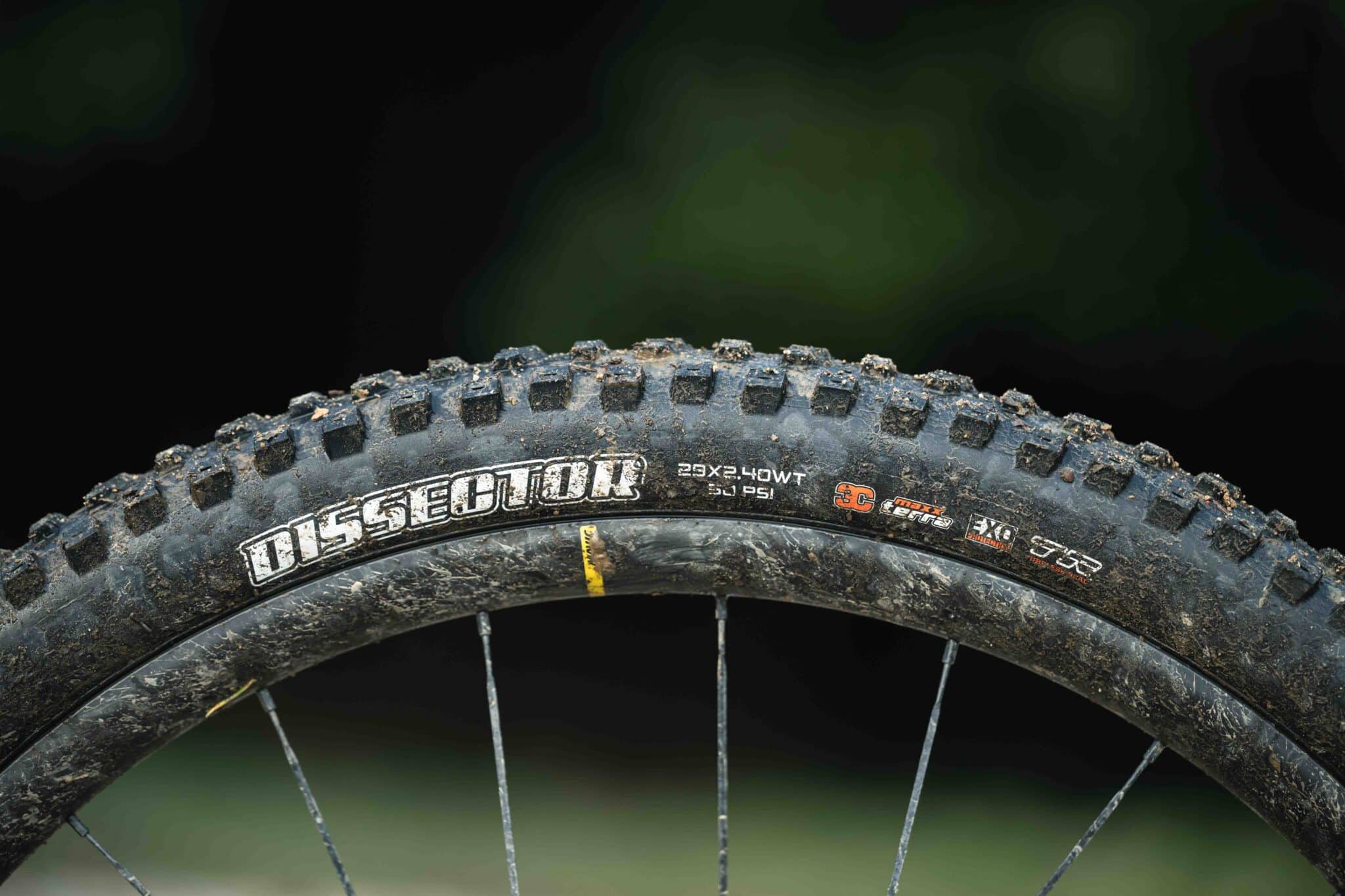 Le train roulant est composé de roues Mavic Crossmax XL R en carbone, surmontées de série de pneumatiques Schwalbe Nobby Nic 2.4 (carcasse SuperGround et gomme SpeedGrip). Notre modèle de test était quant à lui équipé de pneus Maxxis Dissector en 2.4 (carcasse EXO et gomme MaxxTerra). Pour plus d’explications quant aux pneumatiques Maxxis, à leurs profils, leurs gommes et leurs carcasses : Maxxis : le guide complet de la gamme de pneus trail / enduro.