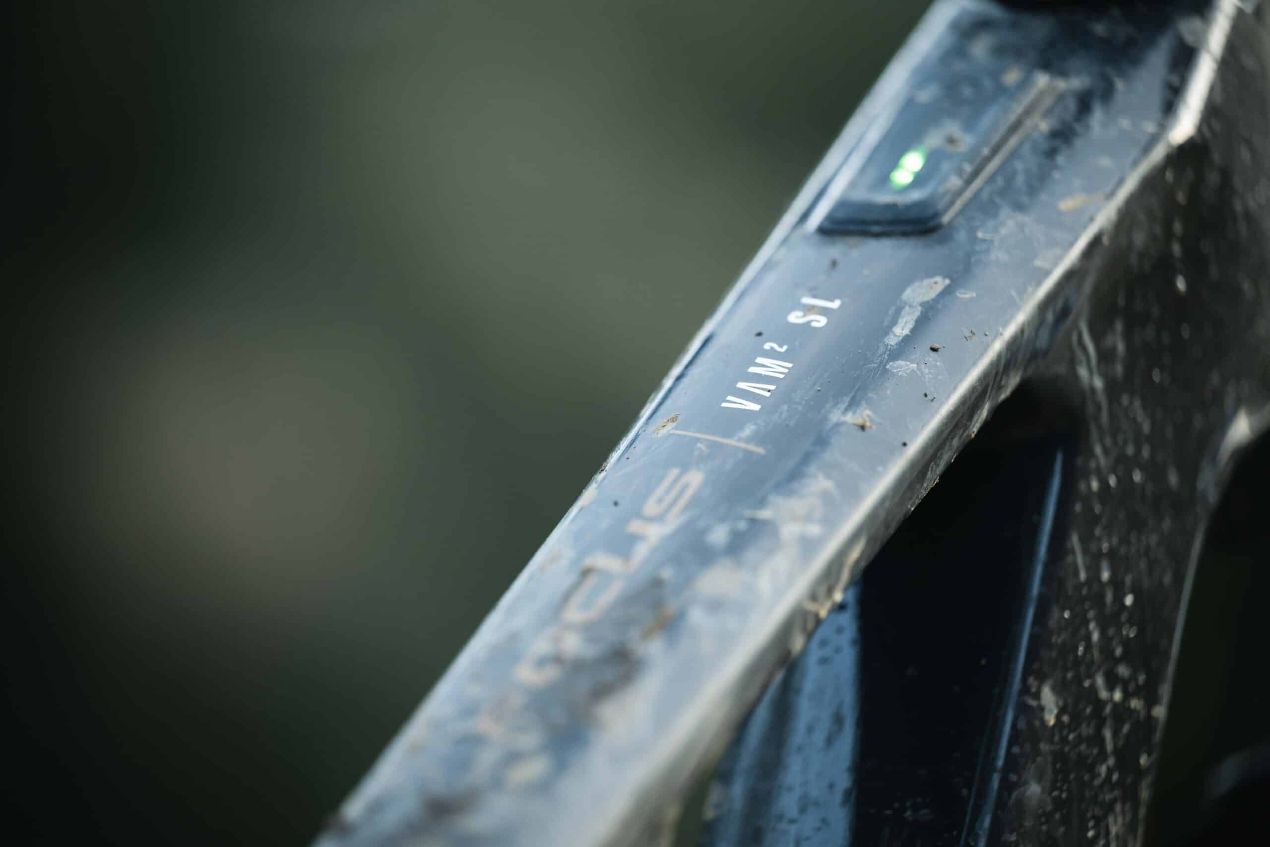 Avec des lignes assez simples, directes et élancées, le Focus Vam² SL marque ses influences provenant directement des machines de XC, et se détache du look all-mountain/enduro choisi par son grand frère le Jam² SL. Sur la balance, le cadre de ce Vam² SL pointe à 2 172 grammes en taille M (y compris la biellette et la visserie, mais pas l’amortisseur). La marque explique « se concentrer sur la sensation de poids et de légèreté sur les sentiers, la facilité et le plaisir de pilotage plutôt que sur le poids du vélo sur papier ».