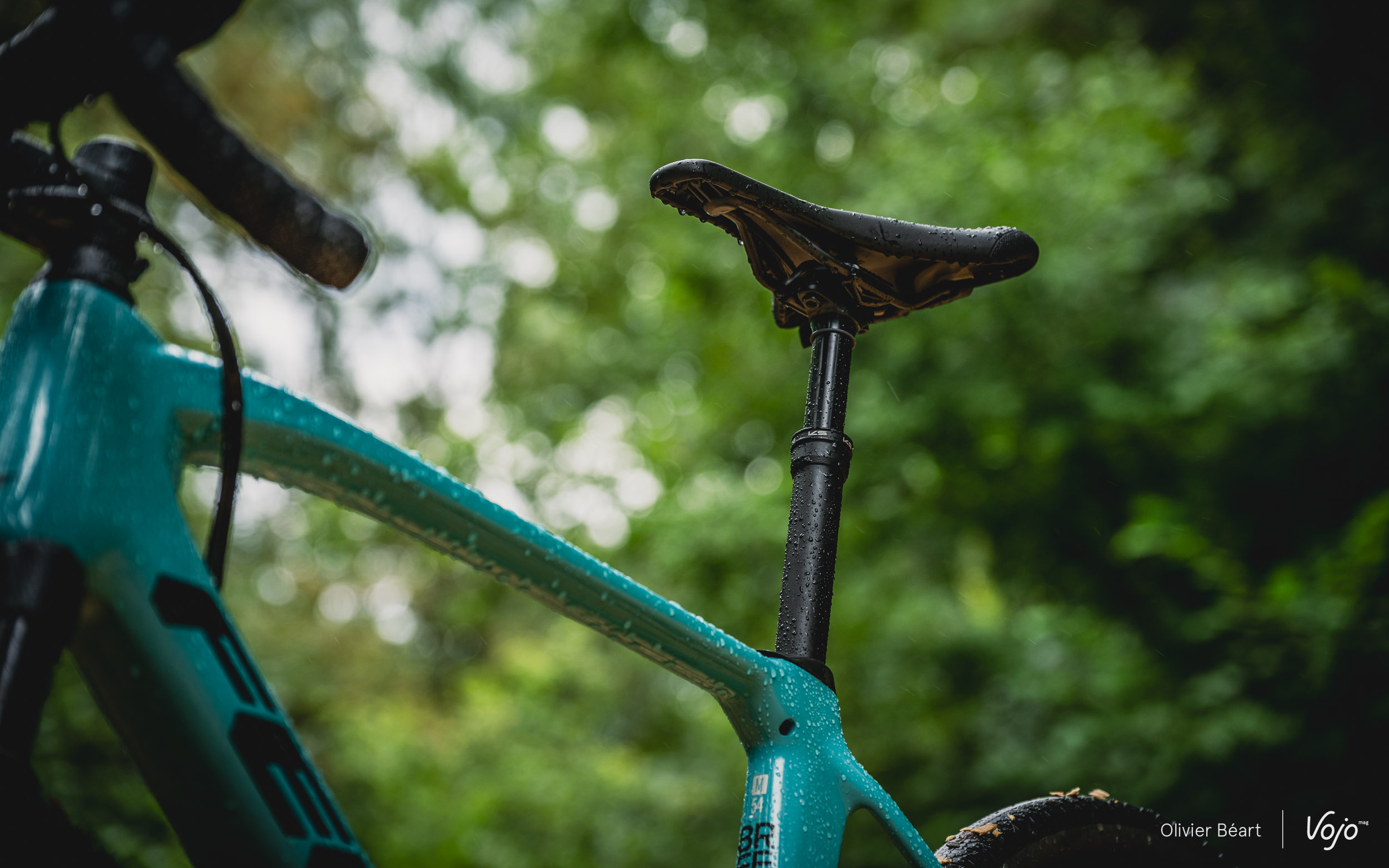 Plus encore que pour la fourche, nous étions très, très sceptiques quand à l’intérêt d’une tige de selle suspendue, même en gravel. En VTT, l’idée a été abandonnée depuis bien longtemps. Et pourtant, nous avons très rapidement perçu un réel intérêt en matière de confort… et même d’efficacité au pédalage sur des sols chahutés. Même pas besoin que ce soit très cassant : la tige de selle suspendue aide à éviter d’avoir sans arrêt les fesses qui sautillent sur la selle, et c’est vraiment appréciable.