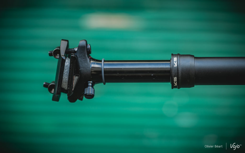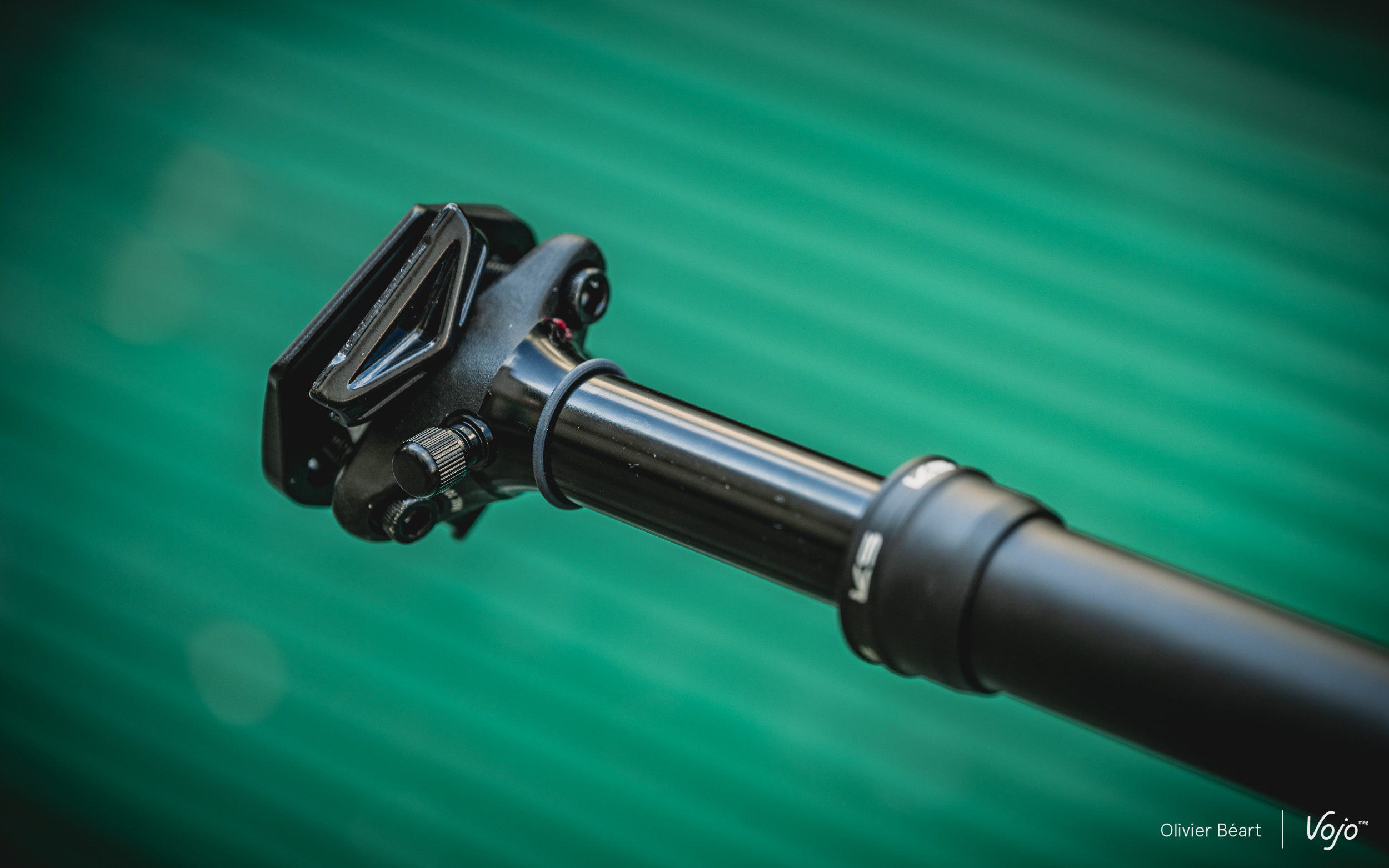 Par contre, il y a un un gros bémol : KS n’a pas prévu de blocage de cette suspension en position haute. Du coup, même sur route ou dans certaines montées où il est impératif de garder un bassin bien calé à une hauteur stable, la tige de selle continue d’osciller, ce qui fait varier la hauteur de selle. Certes, on ne parle que de 5 à 10mm, mais c’est bien perceptible, pas agréable et pas efficace. C’est vraiment dommage, car le fonctionnement de la suspension est agréable et vraiment utile dans beaucoup de circonstances.