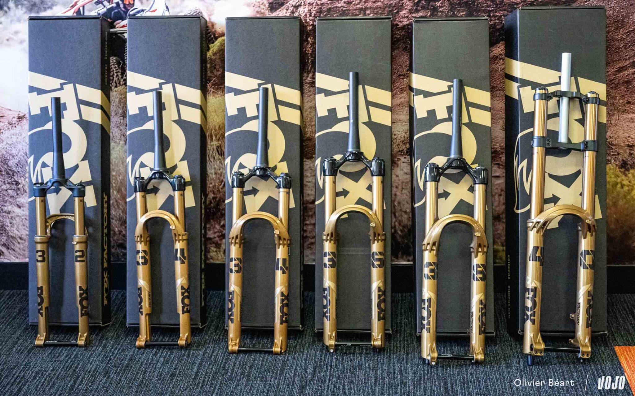Evacuons tout de suite un sujet : oui, ce qui vous a certainement sauté aux yeux, c’est la couleur dorée des nouvelles fourches Fox, et c’est bien normal. Pourtant, ce n’est pas là que résident les vraies nouveautés car les châssis des fourches all-mountain/trail/enduro et DH (Fox 34, 36, 38 et 40) ne changent absolument pas, mis à part au niveau cosmétique avec cette fameuse robe dorée.