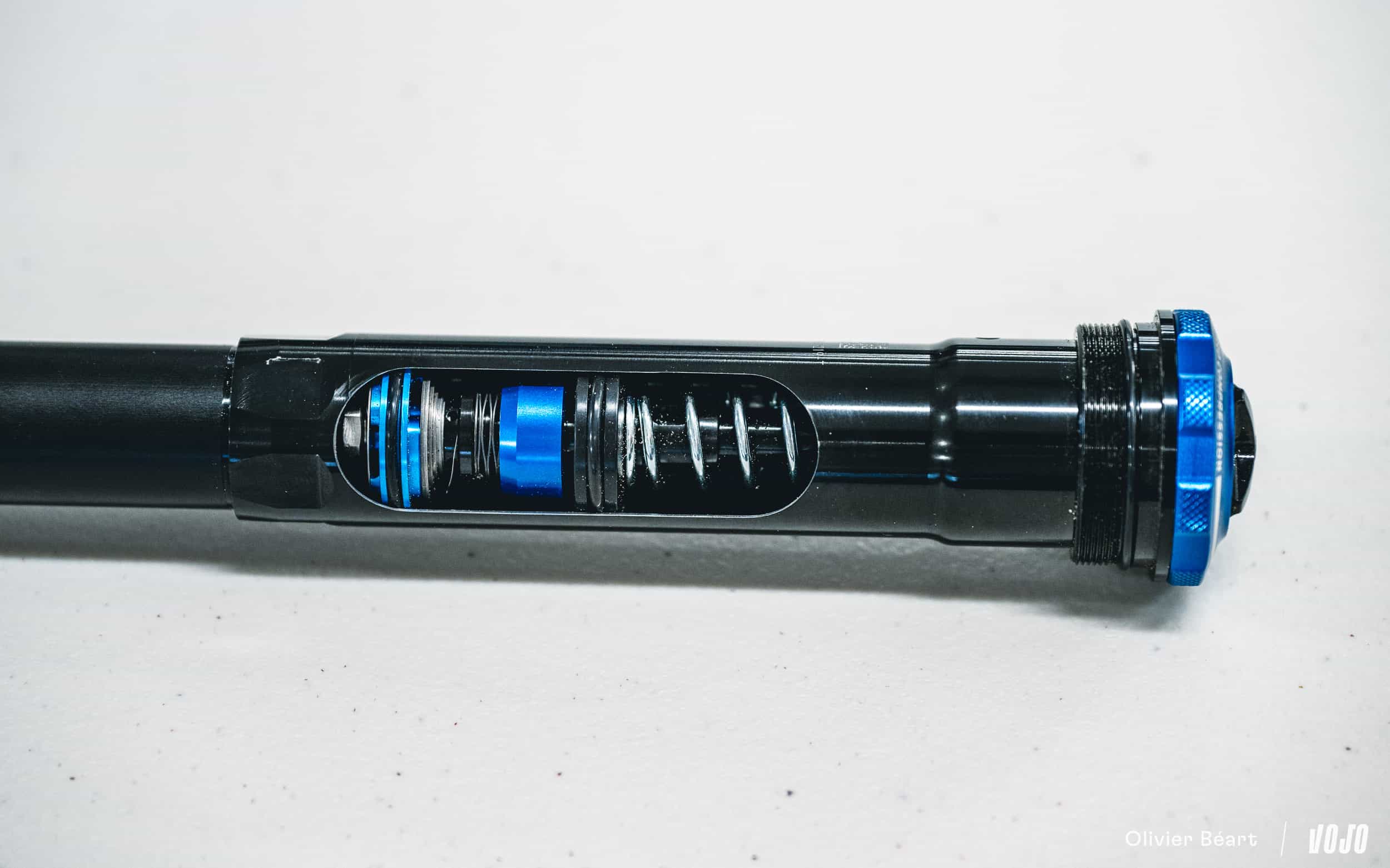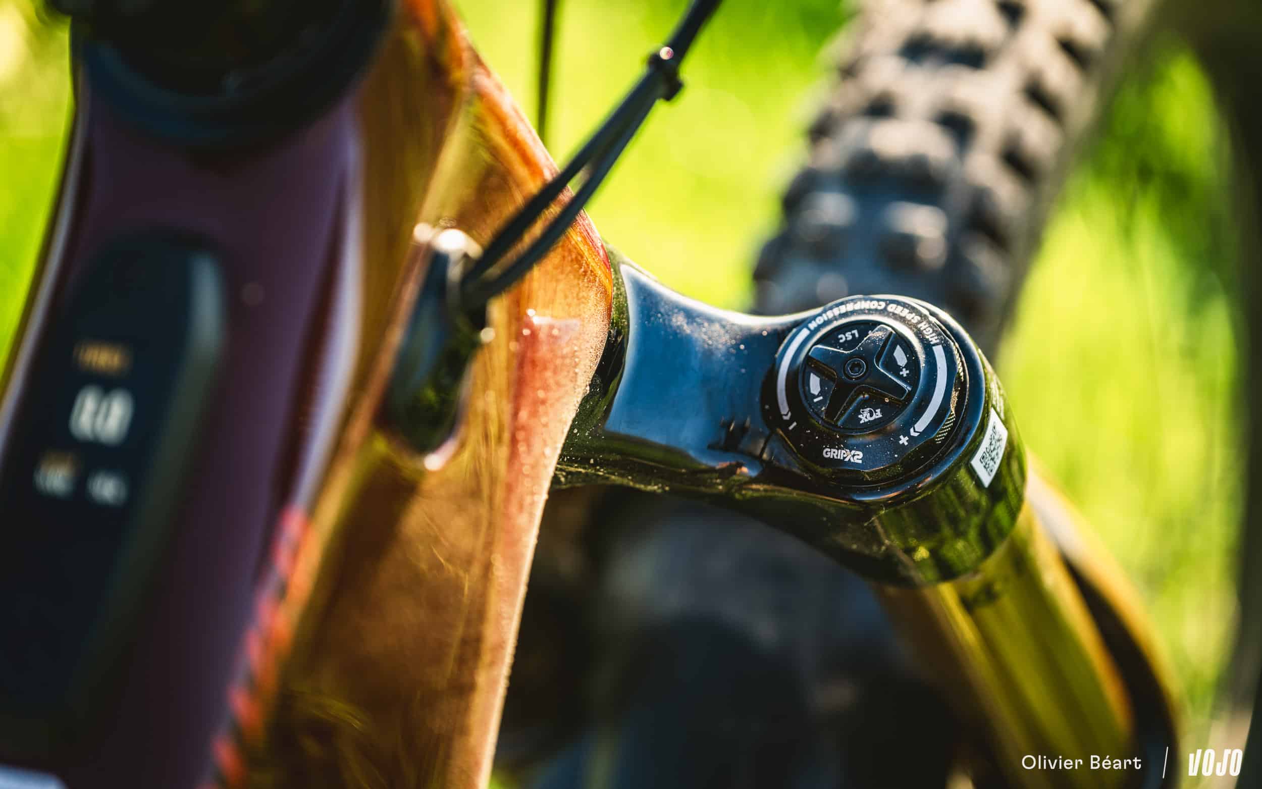 Les vraies nouveautés, elles se situent à l’intérieur de la fourche. Pas au niveau du ressort à air, qui ne change pas non plus, mais au niveau de l’amortissement. La cartouche Fit4 prend une retraite bien méritée après plus de 10 ans de service, place désormais à une déclinaison de la technologie GRIP, et plus précisément de la très évoluée cartouche GRIP2 déjà présente sur plusieurs modèles haut de gamme, avec ses nombreuses possibilités de réglages.