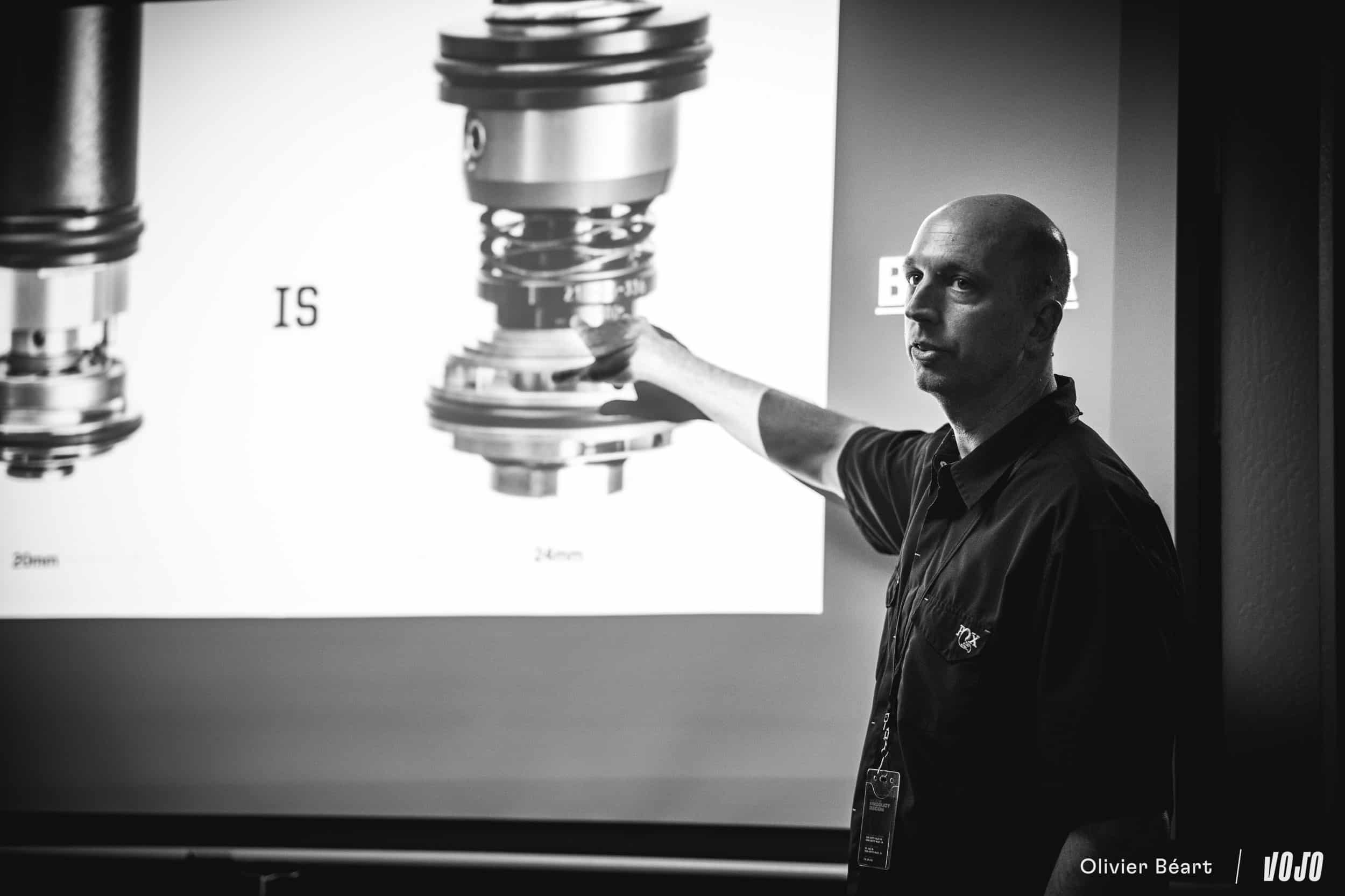 Bill Brown, responsable de l’ingénierie chez Fox, nous explique leur philosophie de travail au moment d’aborder ce chantier de modernisation de cette cartouche haut de gamme destinée aux usages enduro/gravity : « On n’arrête jamais d’apprendre et, dans le cas de Fox, nous pouvons aussi nous reposer sur la puissance d’un groupe actif aussi dans d’autres domaines comme les sports moteurs. Ils apprennent des choses du vélo et l’inverse est vrai aussi. La cartouche GRIP2 reste une bonne base, nous n’avons donc pas tout changé, nous avons surtout cherché à la raffiner et à répondre à certains défis et aux remarques pointues de certains riders, tout en faisant en sorte que cela puisse profiter au plus grand nombre et que des amateurs sentent aussi la différence. »