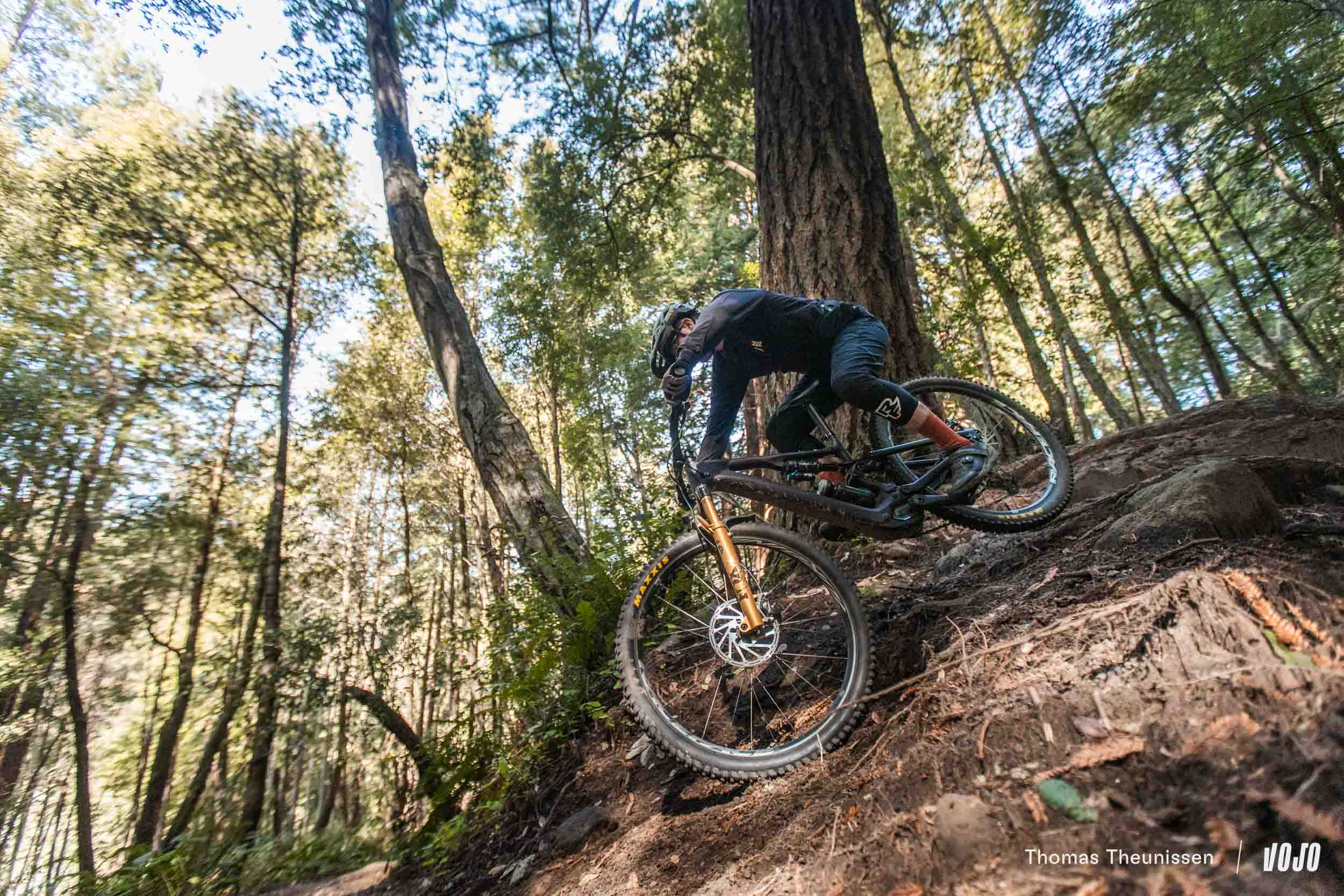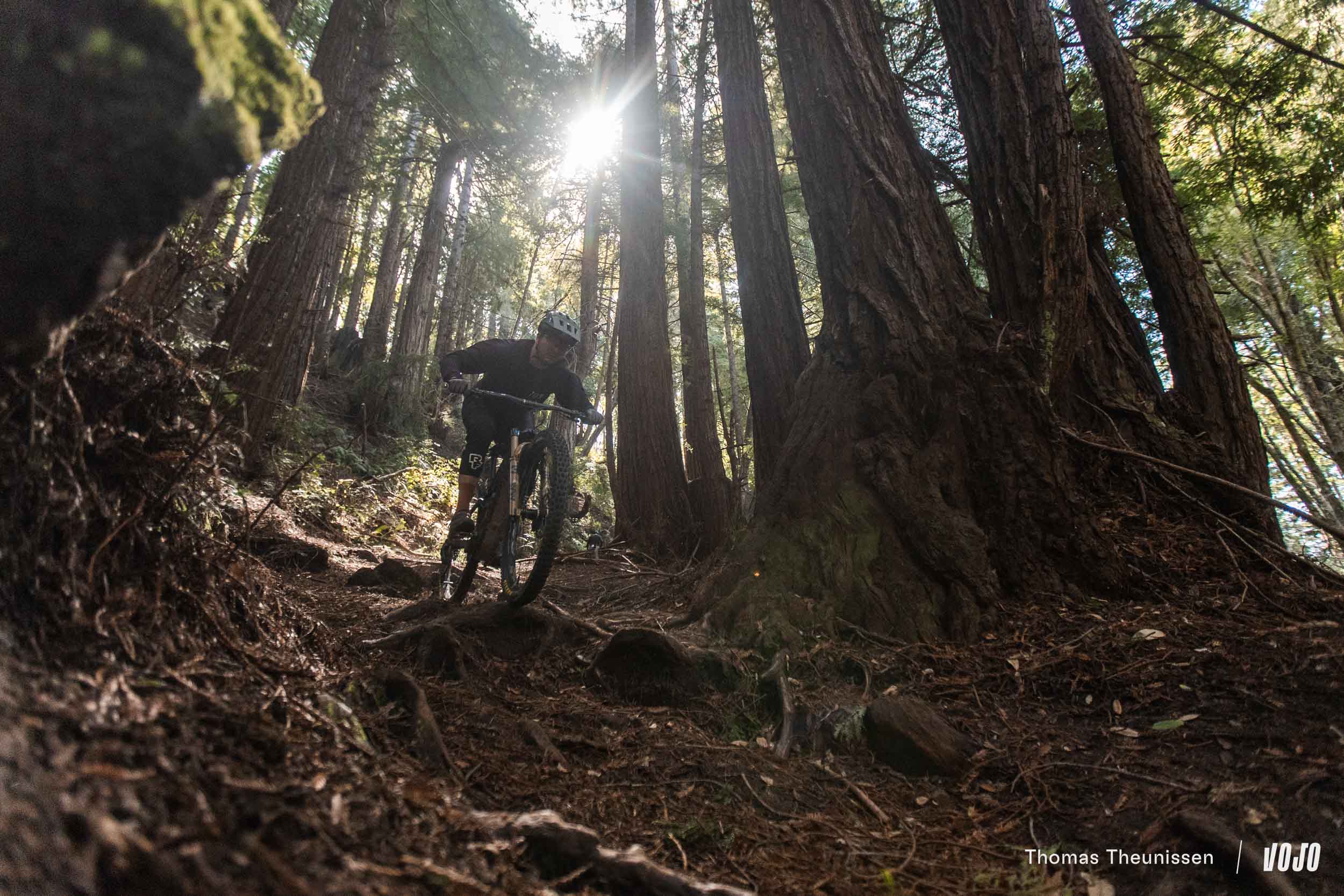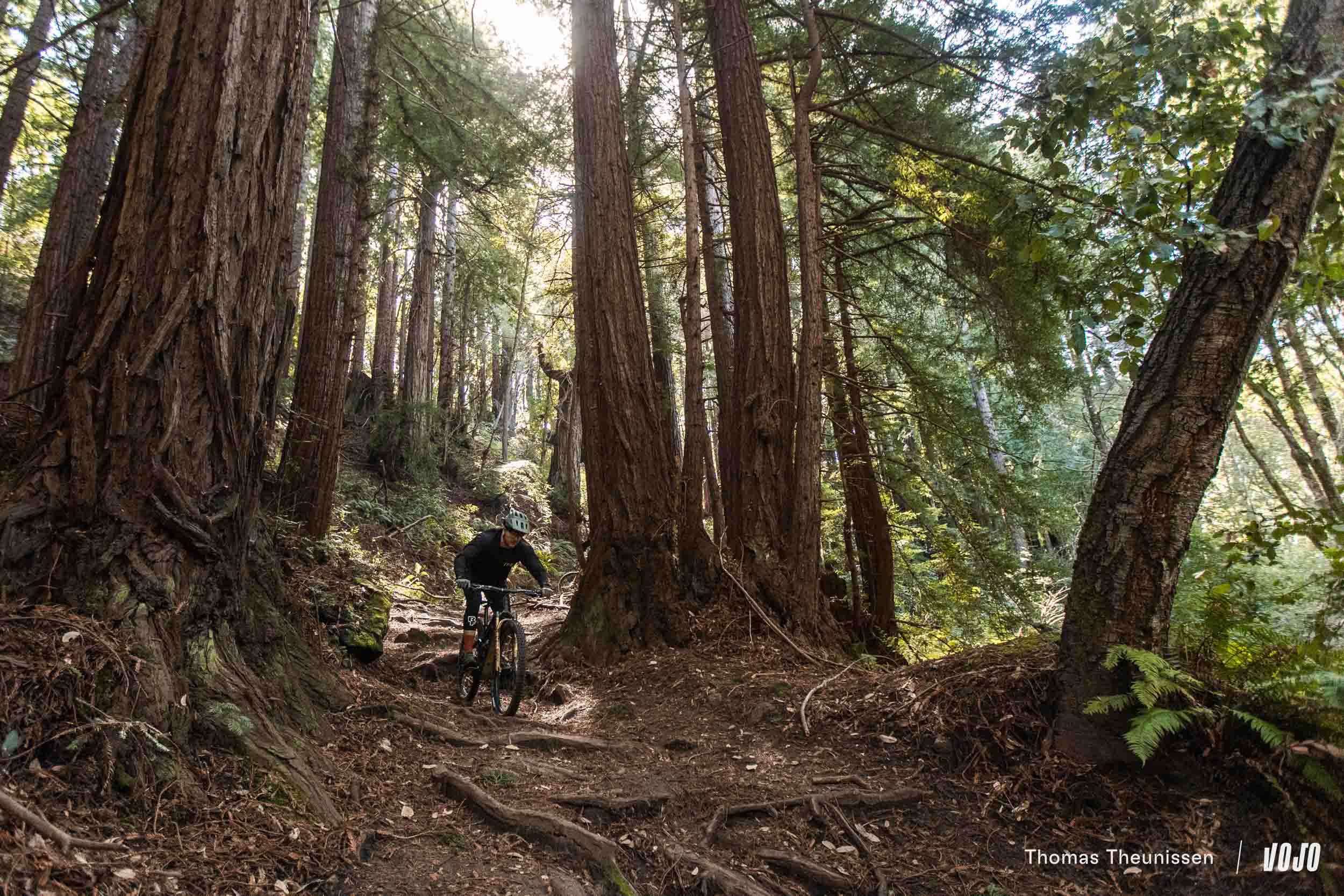 Le premier point qui nous a sauté aux yeux sur les petits singles bien lisses et les petits coups de cul qui permettent d’accéder aux trails plus techniques à Santa Cruz, c’est que notre Fox 36 GRIPX est très peu sensible aux mouvements venant du pédalage et du pilote. Même en danseuse, ça bouge très, très peu et nous n’avons jamais ressenti le besoin d’utiliser la possibilité de (quasi) blocage de la fourche dans ces circonstances.