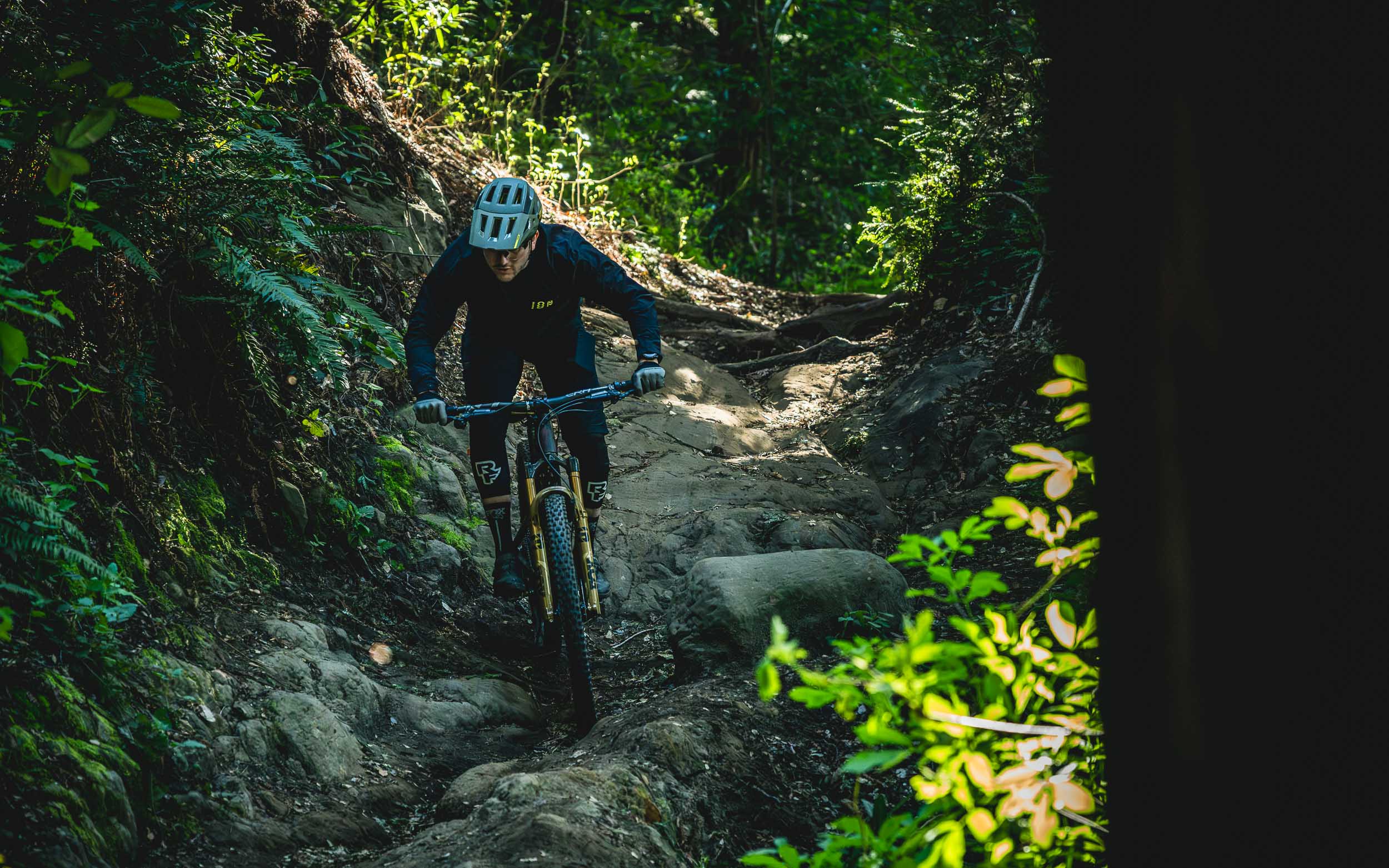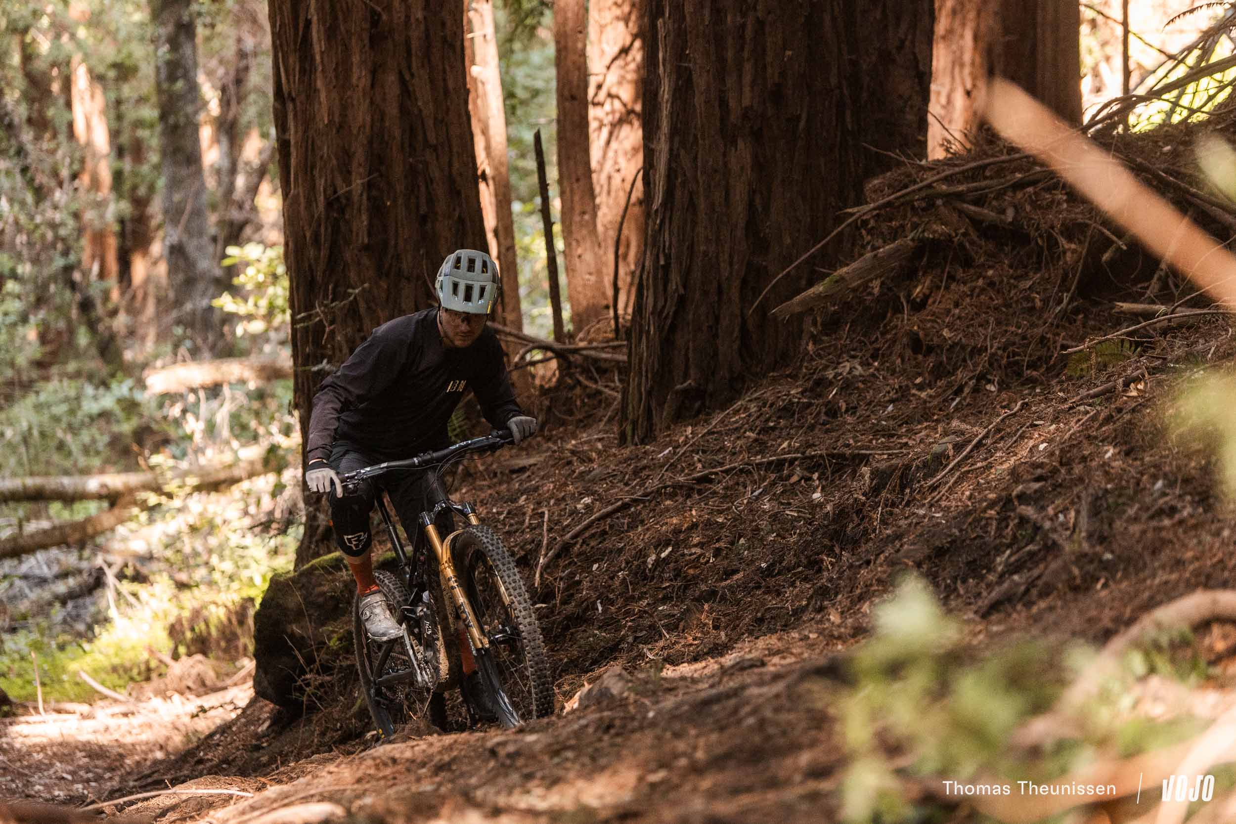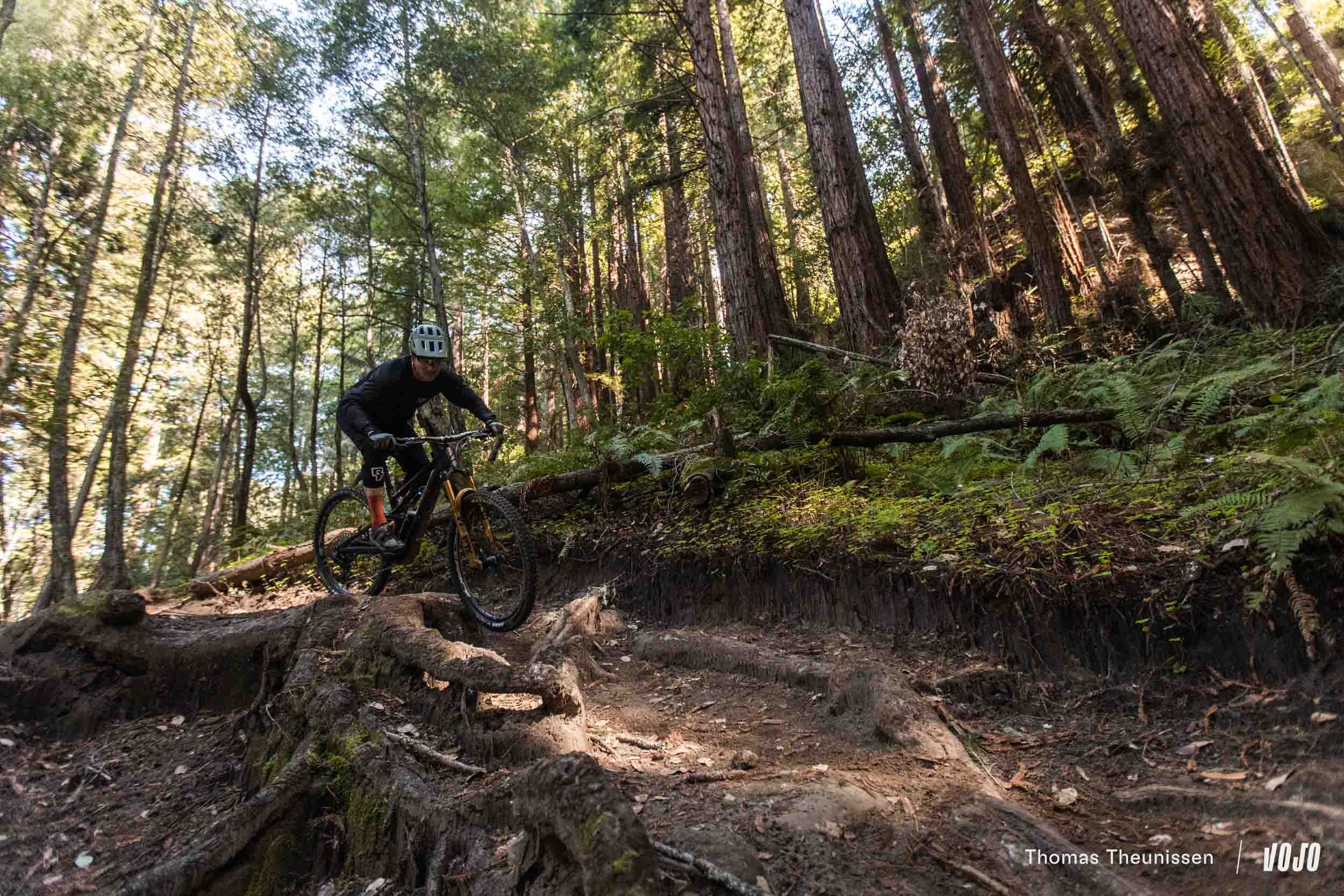 Le premier point qui nous a sauté aux yeux sur les petits singles bien lisses et les petits coups de cul qui permettent d’accéder aux trails plus techniques à Santa Cruz, c’est que notre Fox 36 GRIPX est très peu sensible aux mouvements venant du pédalage et du pilote. Même en danseuse, ça bouge très, très peu et nous n’avons jamais ressenti le besoin d’utiliser la possibilité de (quasi) blocage de la fourche dans ces circonstances.