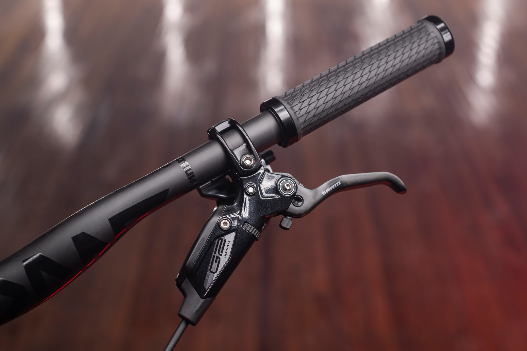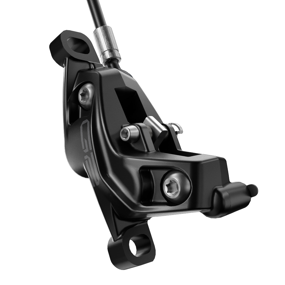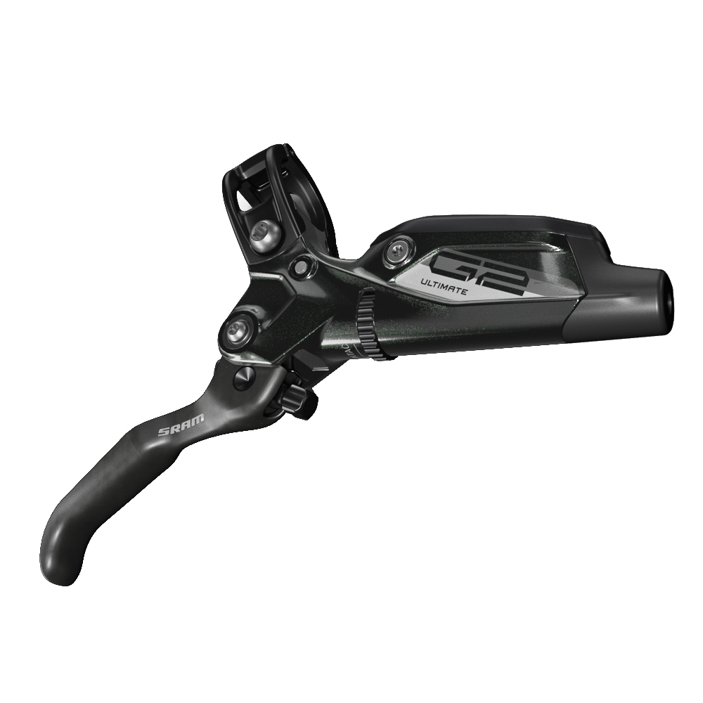 Le modèle Sram G2 Ultimate est, comme son nom l’indique, le plus haut de gamme et il s’agit du frein 4 pistons le plus léger de la gamme. Il s’offre un levier avec un point d’articulation monté sur roulements et la partie en contact avec les doigts est en carbone. La visserie est en titane.