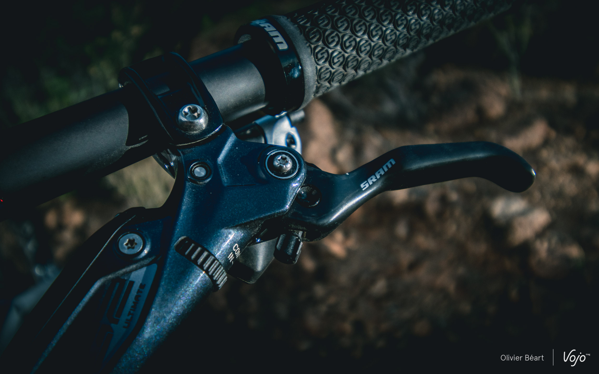 Pour rouler régulièrement avec les Code, il est clair que le feeling des nouveaux freins Sram G2 s’en rapproche très fort. Le point de contact est plus marqué que sur la précédente génération de Guide et l’impression de disposer de plus de puissance est immédiate. Même si Sram annonce le chiffre de 7%, cela semble beaucoup plus sur le terrain. Il faut un petit temps d’adaptation pour retrouver la modularité et le feeling qui ont toujours fait la force des Guide, car le contact avec le levier est un poil plus ferme et franc. Mais après quelques kilomètres, on retrouve des sensations très agréables et une vraie modularité combinée à plus de puissance que par le passé.