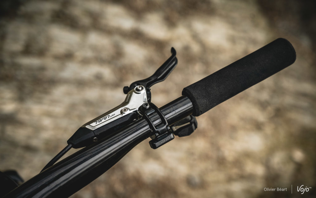 Au passage, les petits clips que vous voyez sur nos photos au niveau de la potence font partie du lot : on peut s’en passer mais Sram conseille de les installer pour maintenir correctement les Durits et prévenir tout bruit parasite. Néanmoins, ce ne sera pas toujours suffisant et il faudra parfois ajouter un clip autocollant sur le cintre pour éviter d’en user la finition.