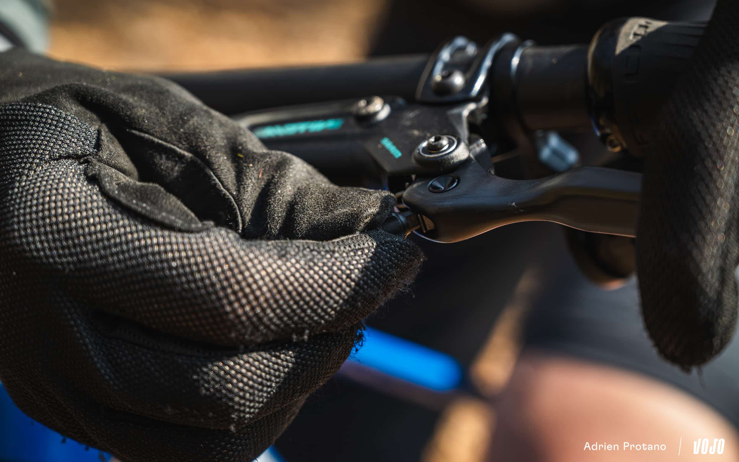 Ces Sram Motive offrent aussi un réglage de la garde sans outil, mais par contre font fi de réglage du point de contact comme on pouvait le retrouver sur les Code (Ultimate et Silver).