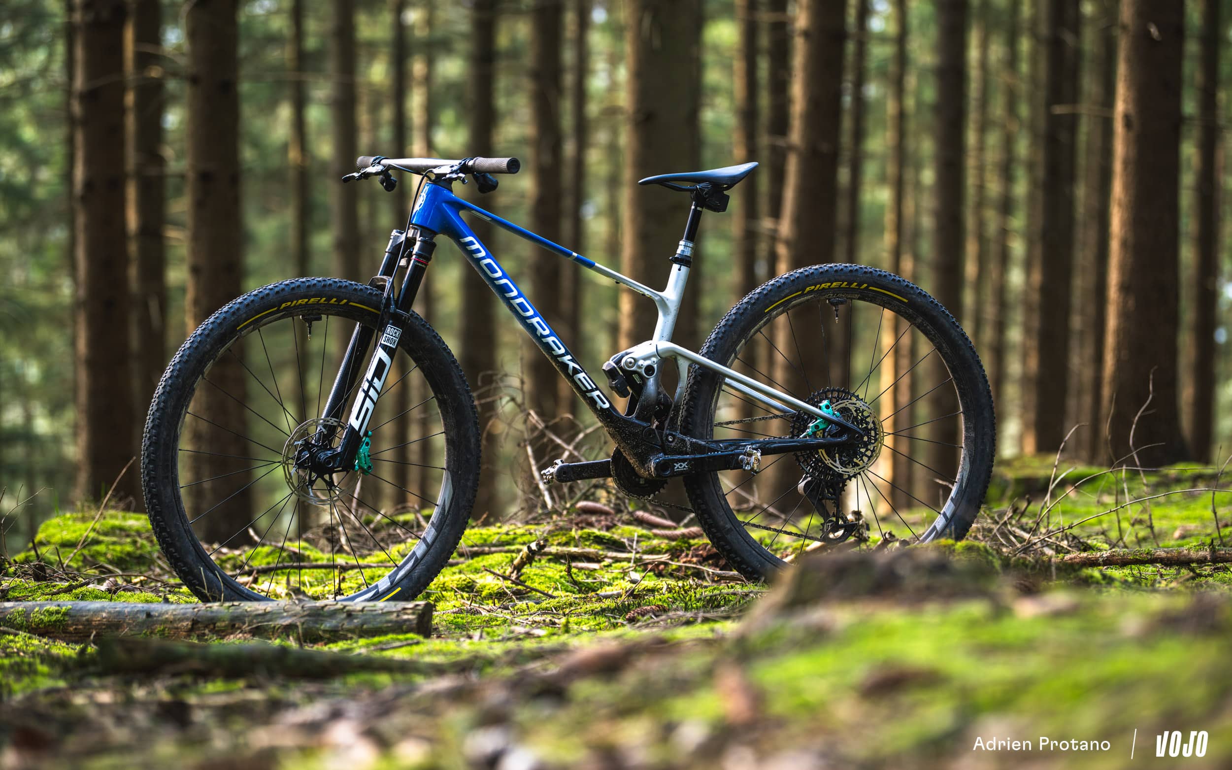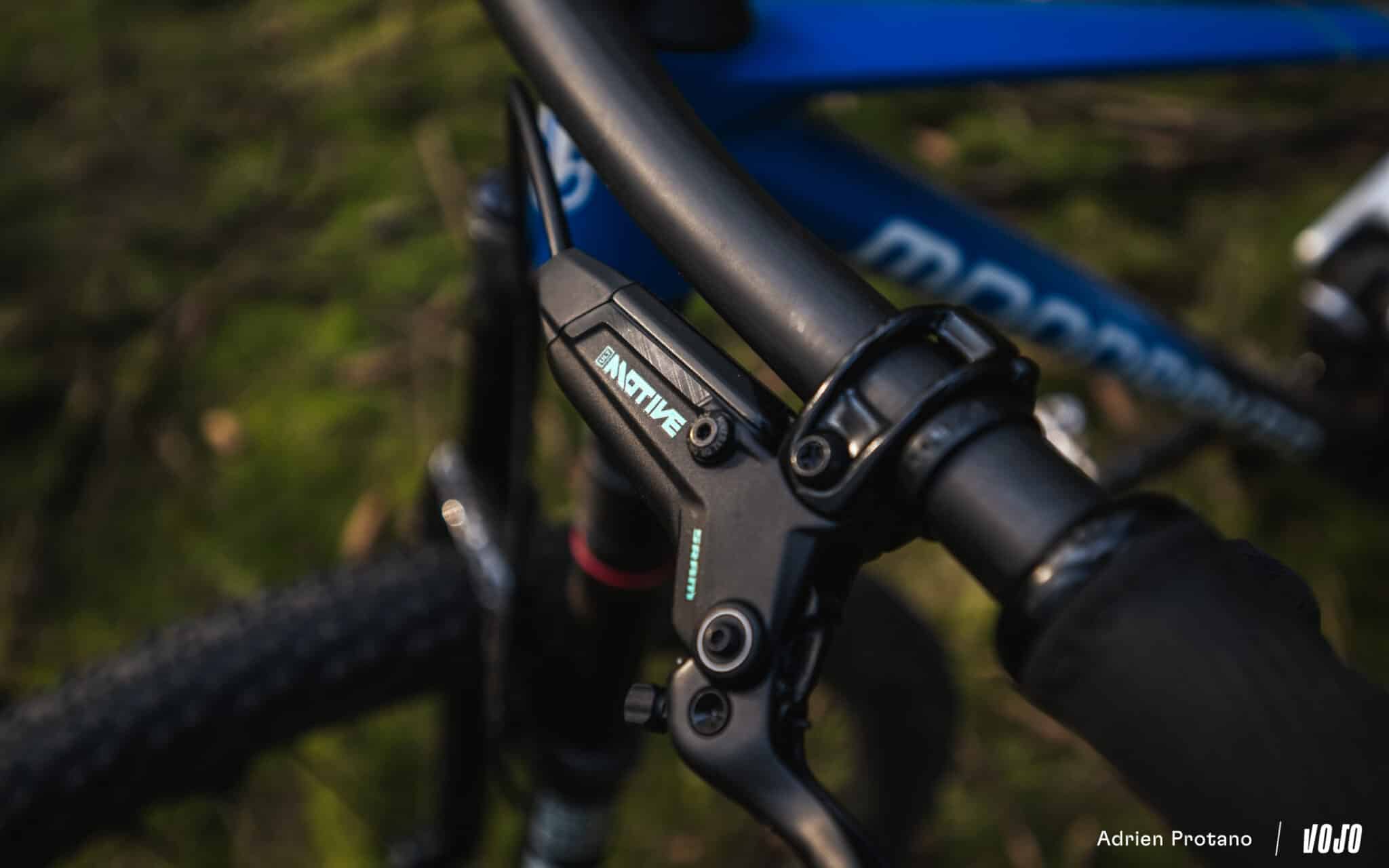 C’est sur un Mondraker F-Podium que nous avons monté cette paire de Sram Motive. Un modèle cross-country qu’on connait déjà bien (cf. Test | Mondraker F-Podium : quand plaisir rime avec efficacité) et qu’on apprécie beaucoup pour ses qualités en descente… à la limite des modèles destinés à un usage trail. Un châssis qui nous a semblé idéal donc pour cette paire de freins qui se veut polyvalente pour l’ensemble des vélos à petit débattement. D’autant plus que lors de notre test, ce modèle était équipé d’origine Sram Level 4 pistons, un bon point de comparaison.