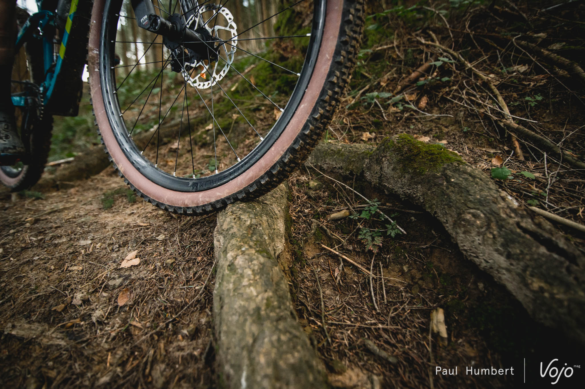 Finalement, le seul moment où nous avons réussi à prendre le Kraken en défaut (mais on s’y attendait un peu) c’est dans les sections grasses ou boueuses. A l’avant, il arrive à survivre grâce à ses bons crampons latéraux, mais l’arrière est vite dépassé, au freinage comme au pédalage. C’est la limite de la polyvalence de ce pneu, qui s’en sort encore bien lorsque le sol est « simplement » humide.