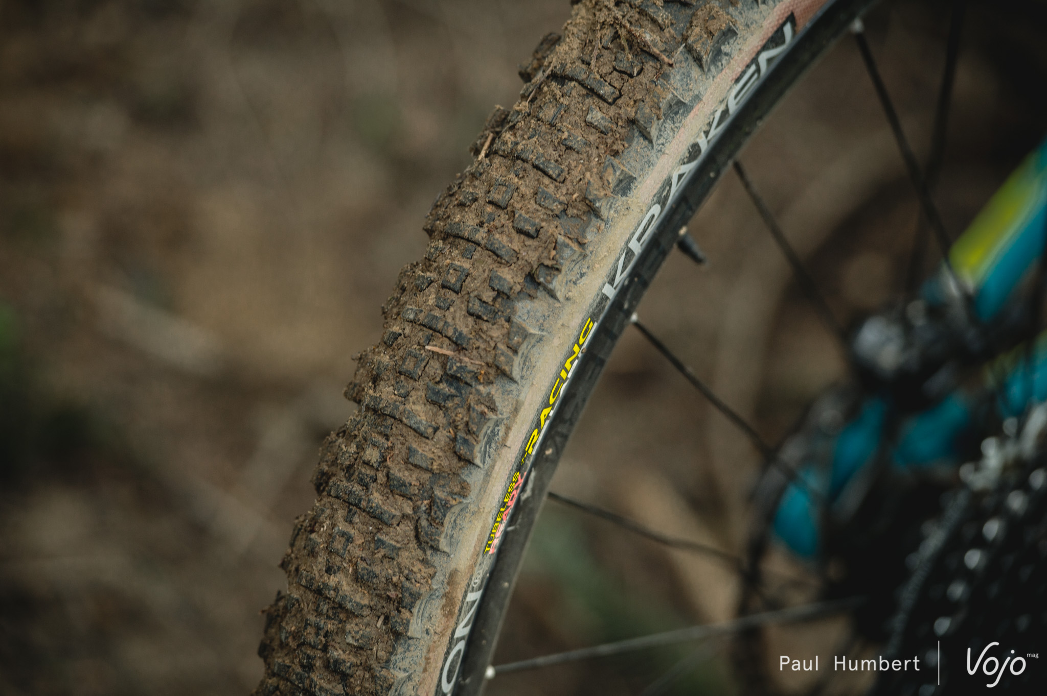 Finalement, le seul moment où nous avons réussi à prendre le Kraken en défaut (mais on s’y attendait un peu) c’est dans les sections grasses ou boueuses. A l’avant, il arrive à survivre grâce à ses bons crampons latéraux, mais l’arrière est vite dépassé, au freinage comme au pédalage. C’est la limite de la polyvalence de ce pneu, qui s’en sort encore bien lorsque le sol est « simplement » humide.