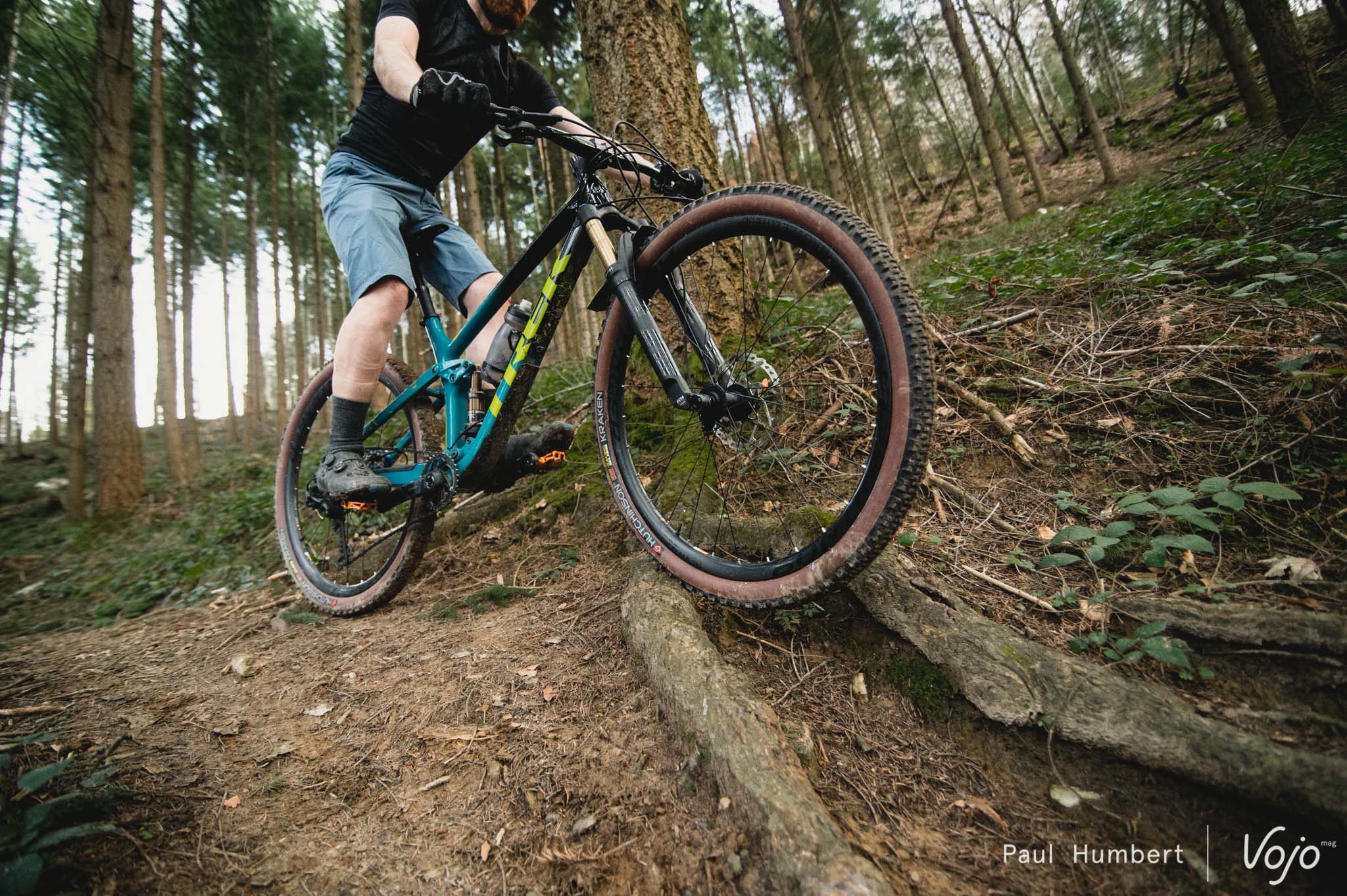 On remarque au passage que le pneu n’est disponible qu’en 2,3″, une section réservée à la descente et l’enduro il y a encore quelques années. Ici aussi, cela vient des athlètes du team MMR mais ils ne sont pas les seuls et Nino Schurter roule lui en 2,4″. C’est d’ailleurs une tendance générale dans toutes les disciplines du vélo : les sections se décalent vers le haut. En route, on est passé du 23 mm au 25 voire 28 mm, le gravel qu’on croyait stabilisé autour de 40-42 mm monte maintenant jusqu’à 50 mm, les 2,6″ sont désormais monnaie courante sur les vélos de 140 mm de débattement et plus…