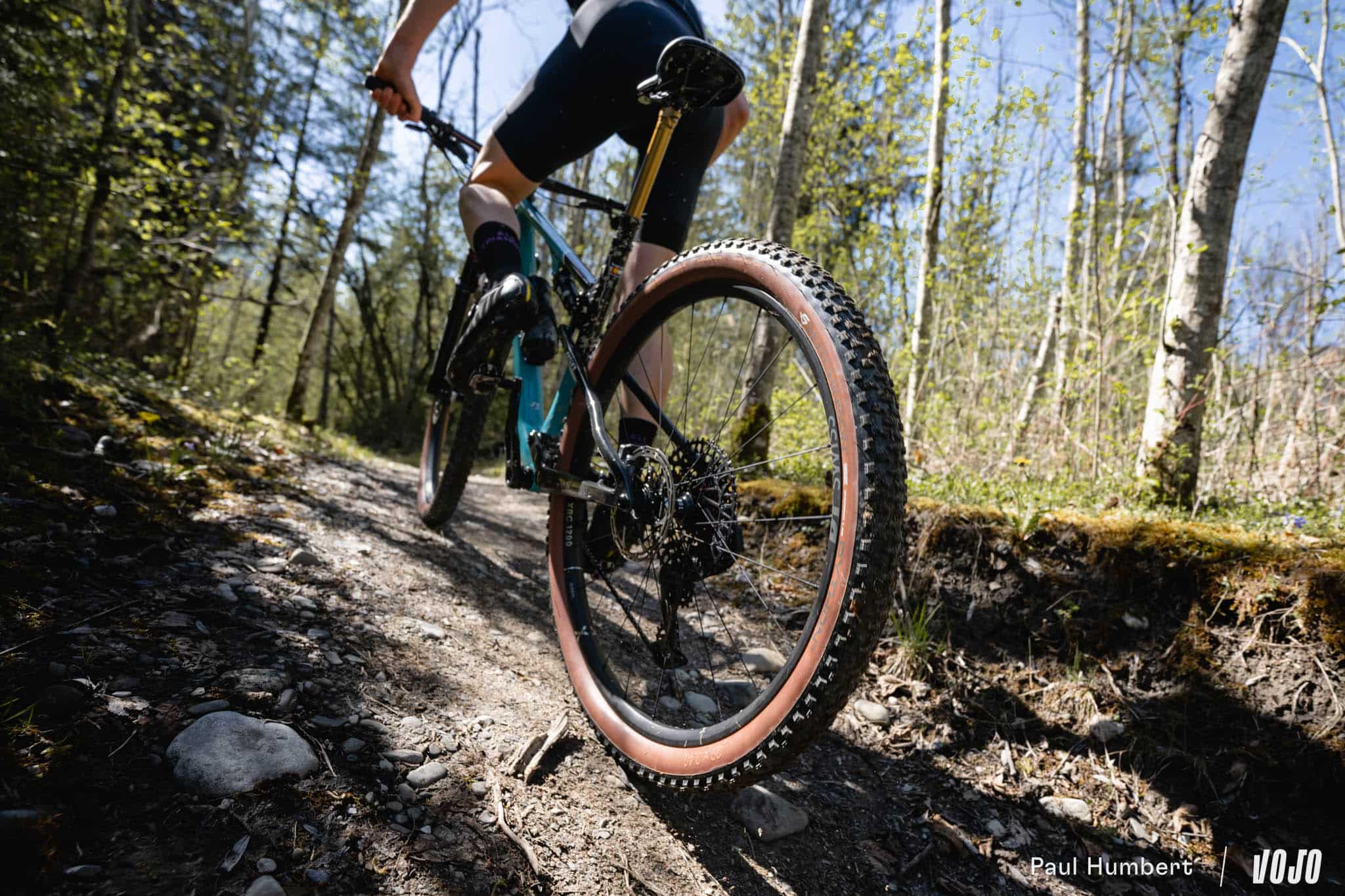 Une fois en action, on découvre un rendement très correct pour un pneu de XC grand public. Le Python 3 se montre très polyvalent et offre une bonne traction, à moins d’être poussé dans l’extrême et la grosse boue. Les compétiteurs les plus exigeants pourront lui reprocher d’être un peu trop consommateur d’énergie, mais le grand public amateur de XC y trouvera son compte avec une belle capacité à pousser le pilote vers l’avant, même en terrain relativement gras.