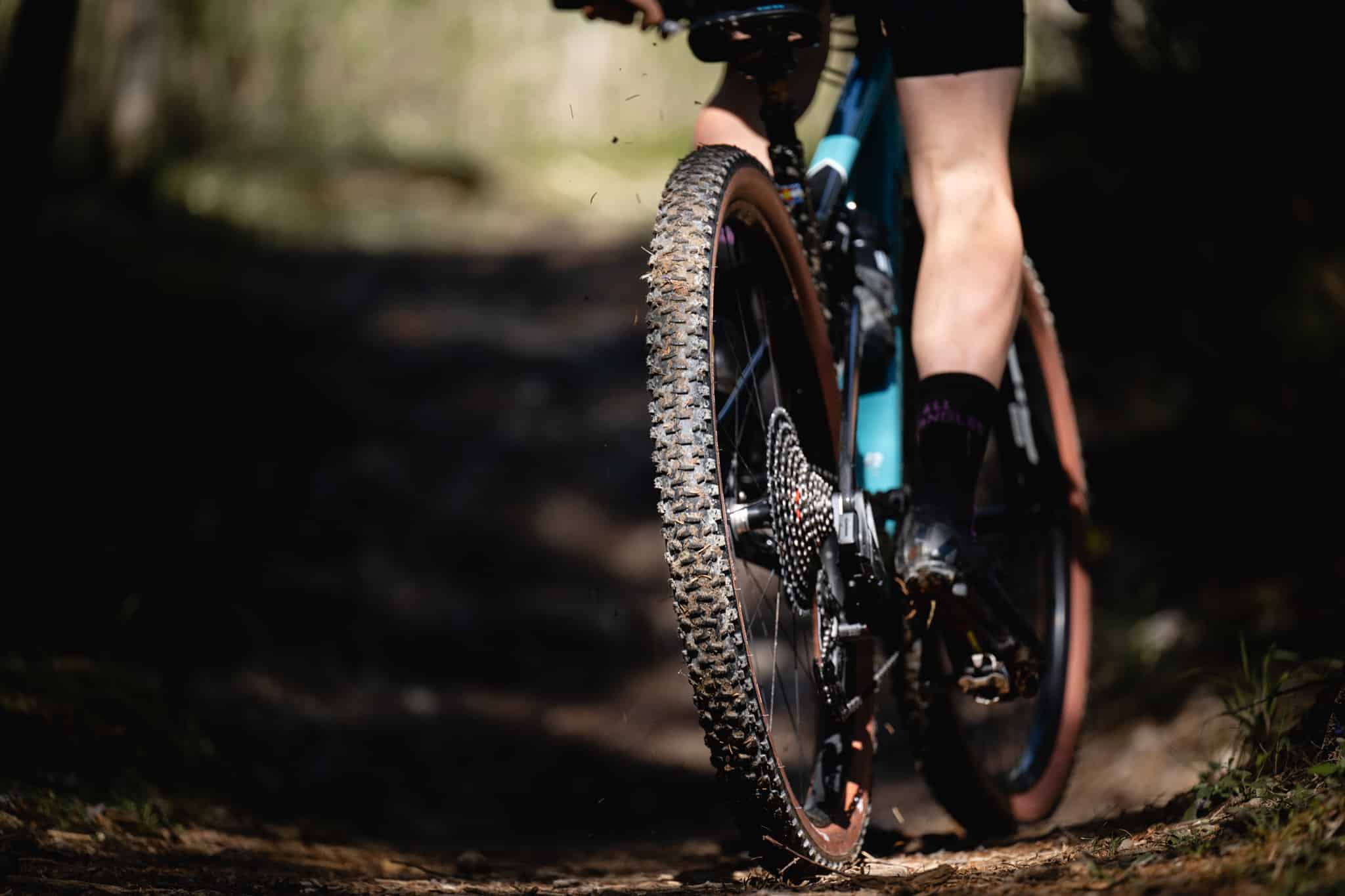 Le Python 2 étant jugé trop étroit par les coureurs, son successeur sera désormais disponible en 29×2.3 ou 29×2.4. Les deux dimensions ont été conçues sur des jantes d’une largeur interne de 30mm. Le Python 3 affiche ainsi une largeur de 57mm pour 2.4 pouces annoncés. Du côté du développement du dessin, ce volume supplémentaire est vu comme un atout pour espacer les crampons, descendre en pression et gagner en polyvalence (si on parvient à contenir le poids).