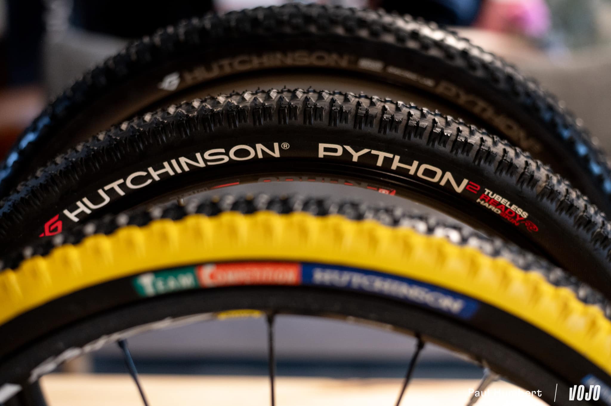 Pour Joël, le Python est un pneu mythique qu’il a découvert par hasard sur le vélo de son prédécesseur chez Hutchinson alors qu’il roulait paisiblement en forêt de Montargis. Le célèbre reptile s’est démarqué en proposant un profil relativement bas et peu cramponné, qui demandait à être roulé avec une pression plus basse que ce qui se pratiquait à l’époque. Le public était frileux à la sortie du pneu, le marketing aussi, mais l’adoption par les compétiteurs aura suffi à entraîner le grand public derrière eux.