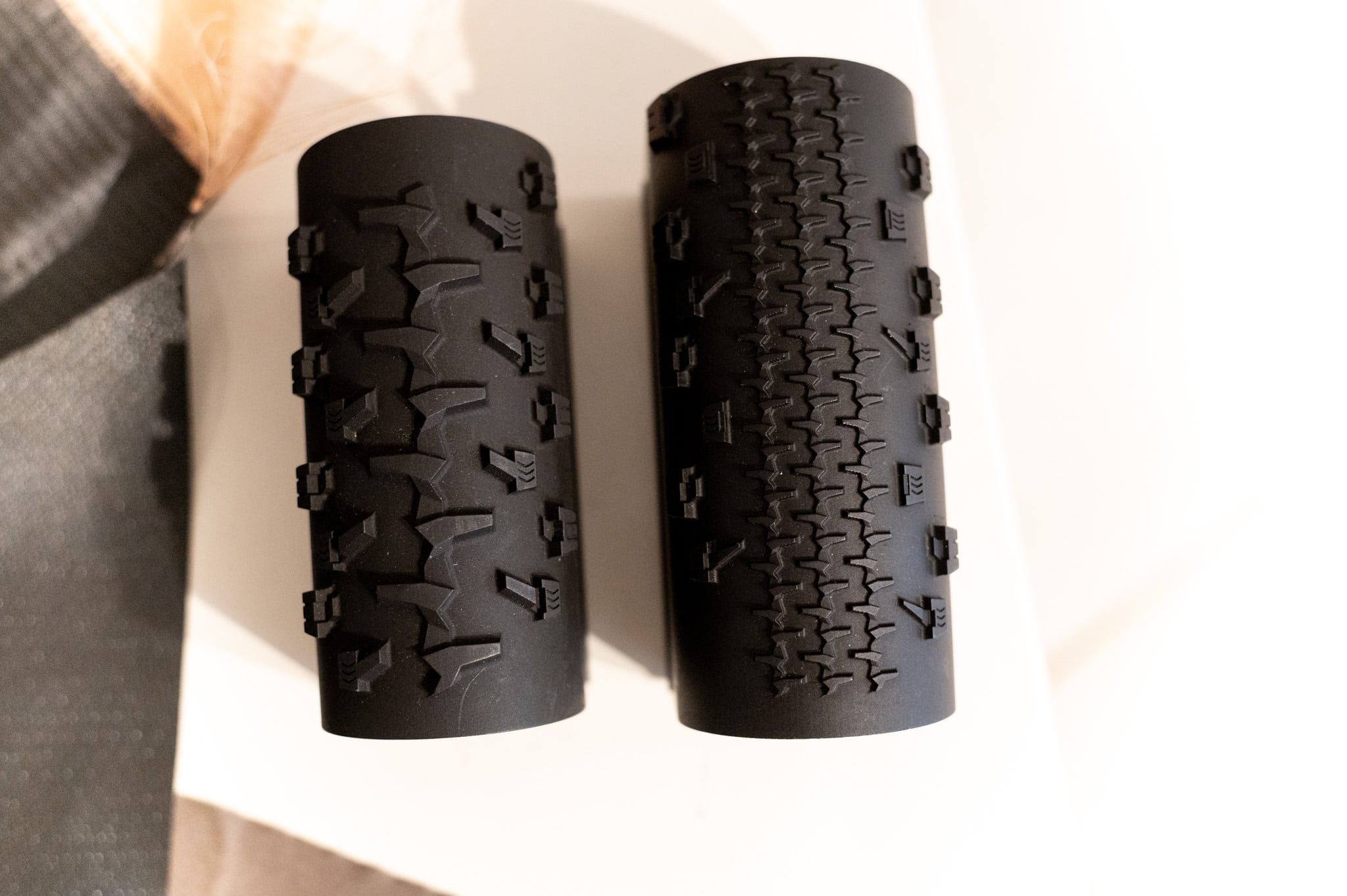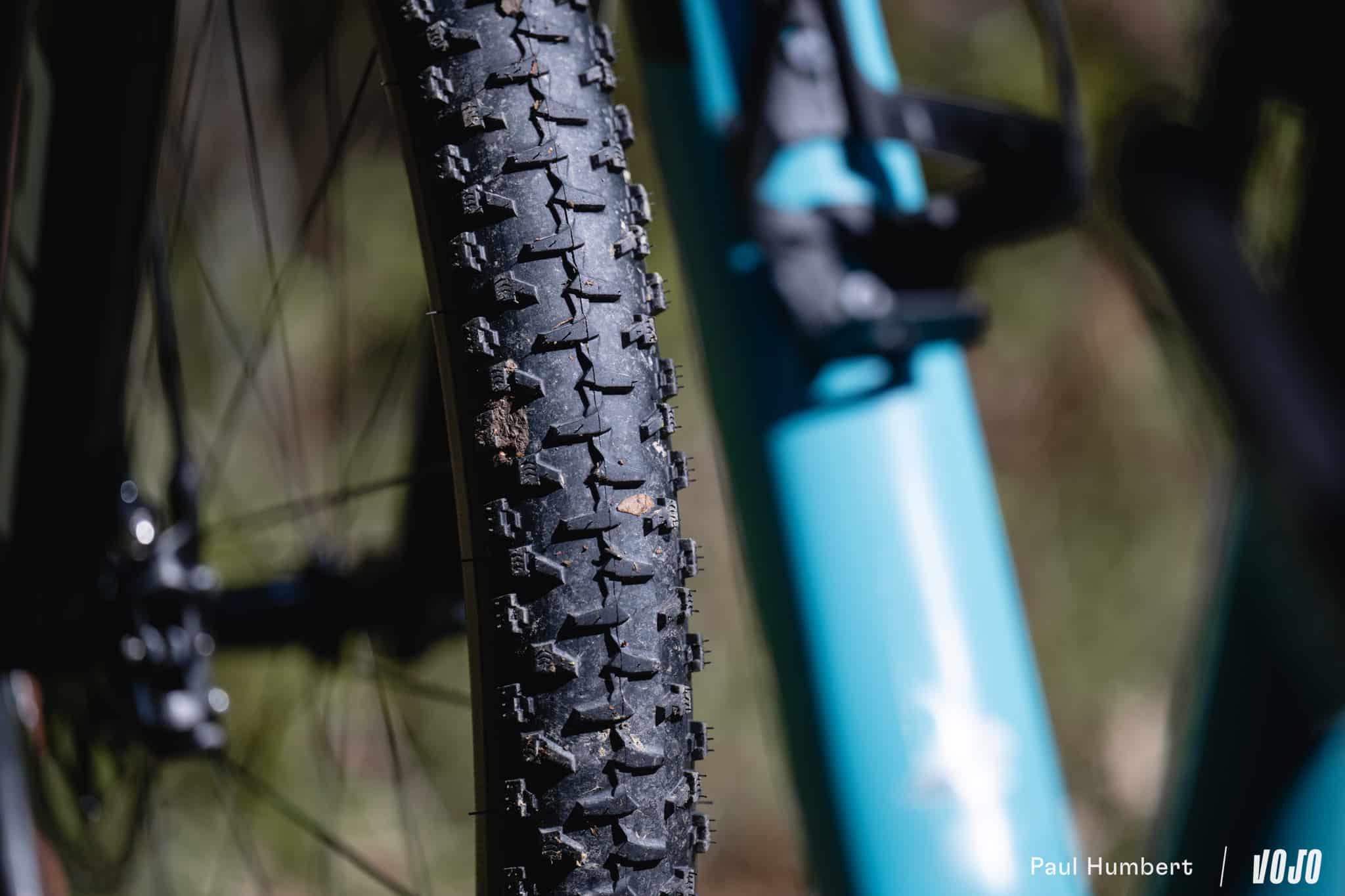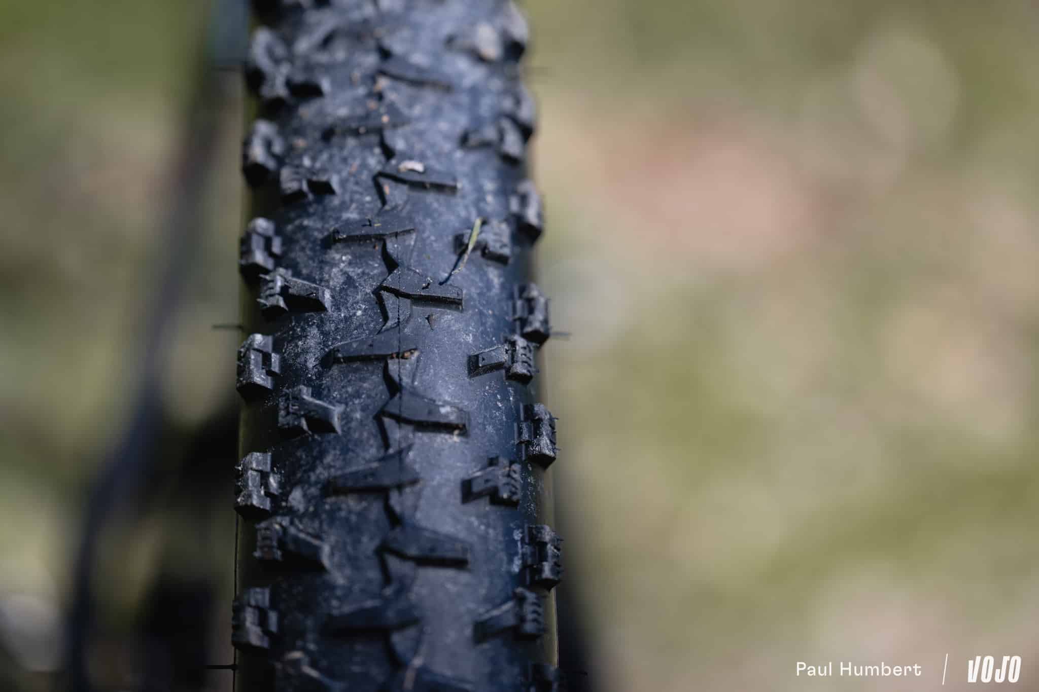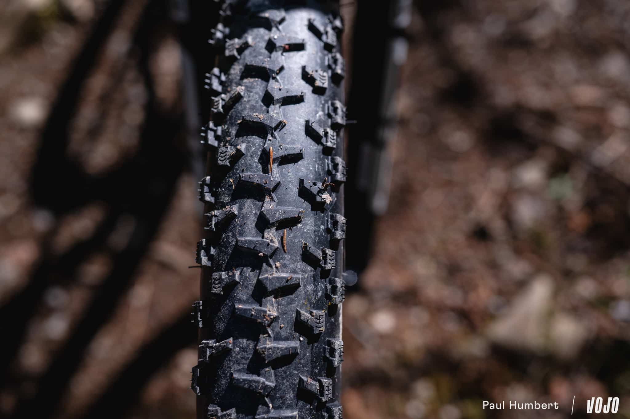 La marque a fait le choix de conserver la bande de roulement iconique tout en augmentant l’espace et la taille des crampons centraux, offrant ainsi une plus grande surface d’accroche et de freinage. En plus du freinage, la traction devrait ainsi être augmentée, tout en offrant un meilleur débourrage. Pour Joël, au delà de la marque de fabrique, la force des crampons centraux, « c’est qu’ils permettent une continuité de la bande de roulement. C’est une colonne vertébrale et on n’a pas besoin de monter ou de descendre de chaque pavé. »