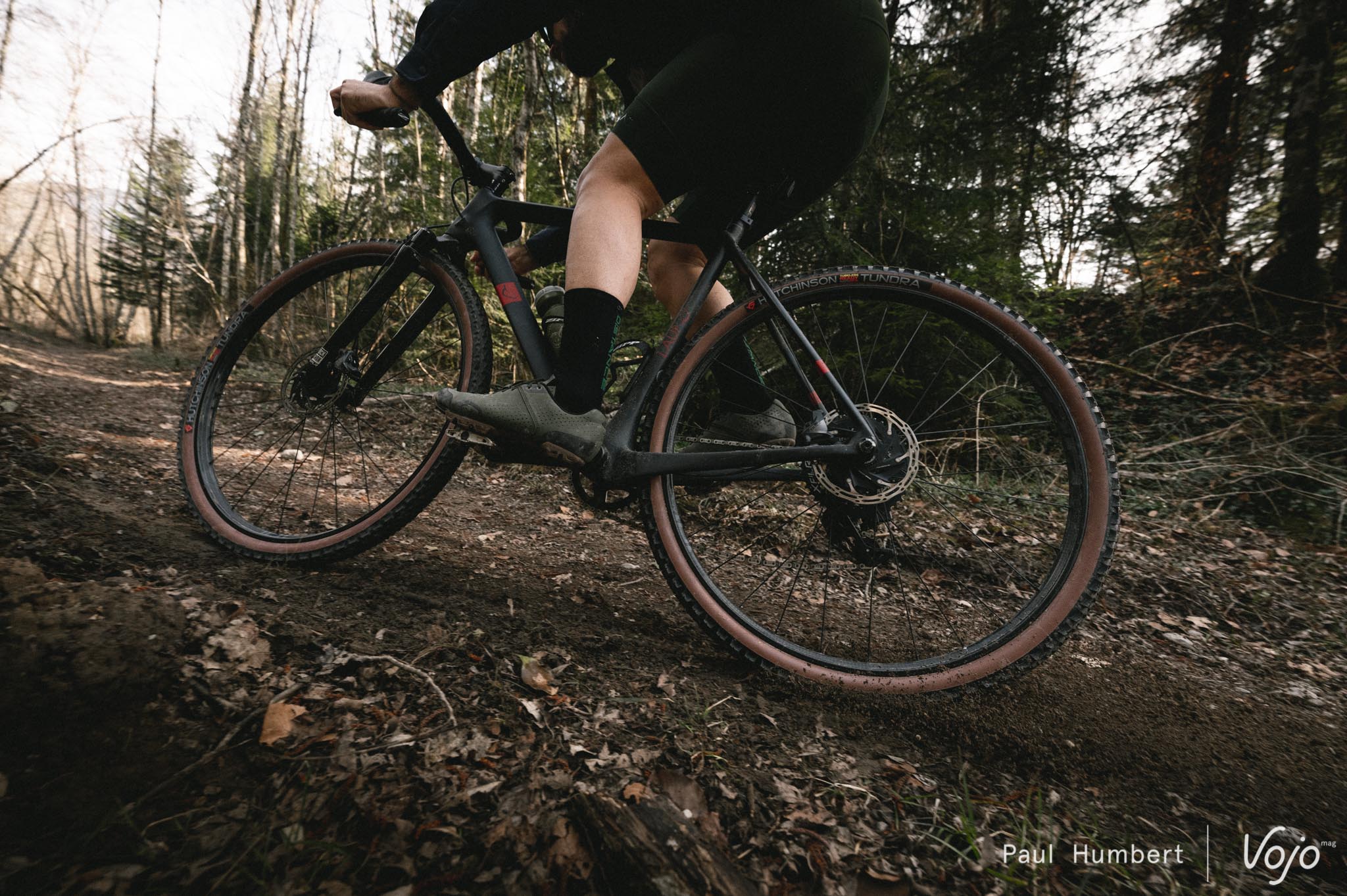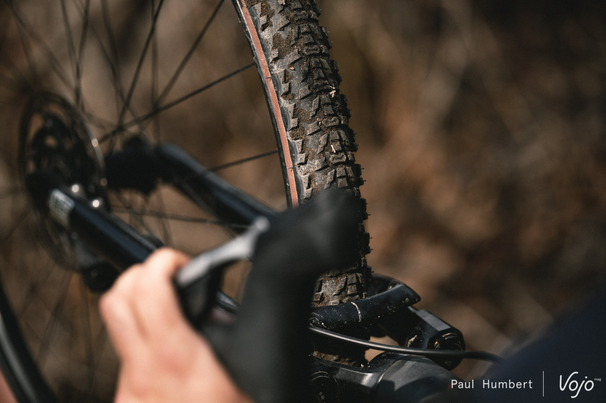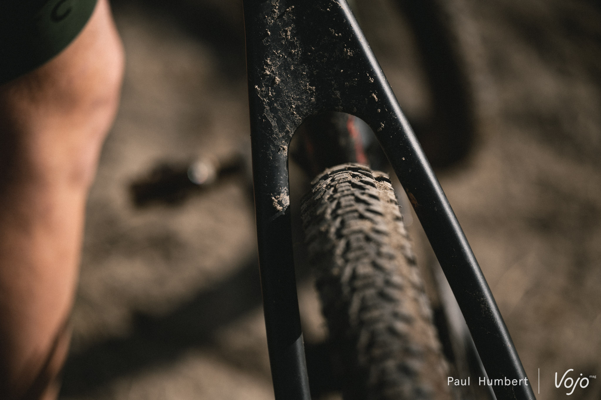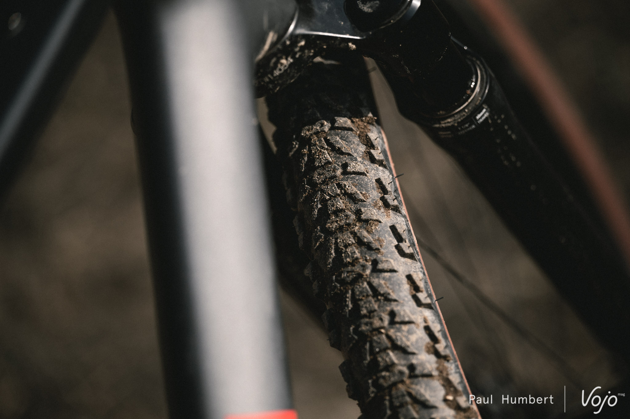 Attention : ce n’est pas un pneu boue de cyclocross ! Il s’en sort plutôt bien quand c’est humide, ses crampons offrent une accroche plus que correcte et il prévient bien quand il va décrocher, mais n’en attendez pas des miracles dans ces conditions. Il démontre juste une belle polyvalence, y compris quand c’est humide, et c’est déjà très bien. Côté usure, elle semble très raisonnable et nous n’avons pas eu non plus à déplorer de crevaison malgré quelques sorties plus engagées, clairement typées VTT.