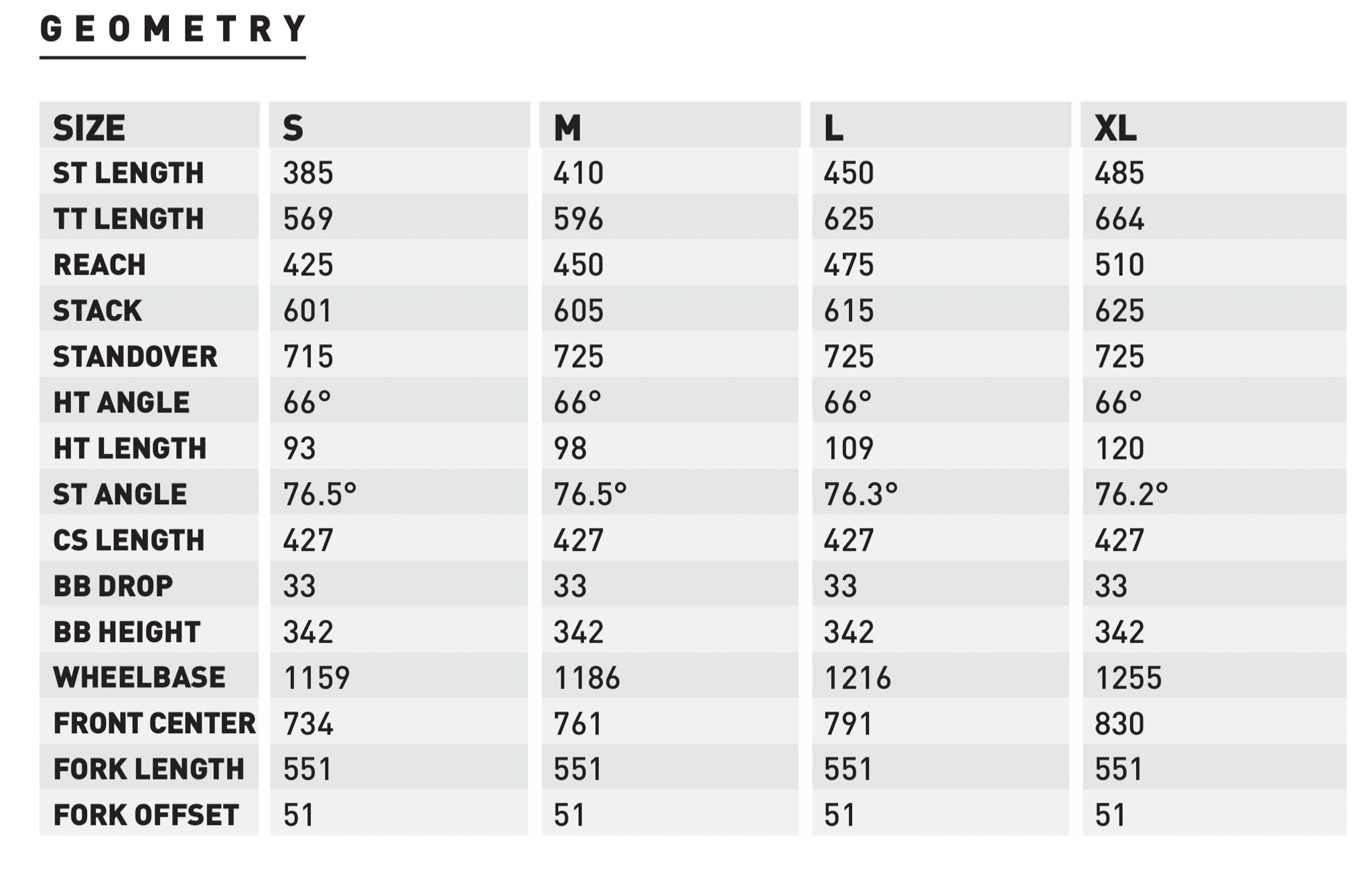 Côté géo, le Process 134 affiche un reach de 450mm (identique à celui du Process 153 d’enduro), un angle de direction de 66 degrés, un angle de tube de selle de 76,5 et des bases de 427mm. Le cadre est produit en 4 tailles (S, M, L et XL). Kona insiste sur le fait que l’angle effectif du tube de selle reste constant en levant sa tige de selle.