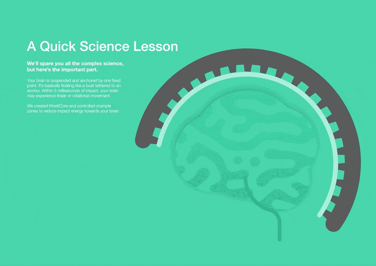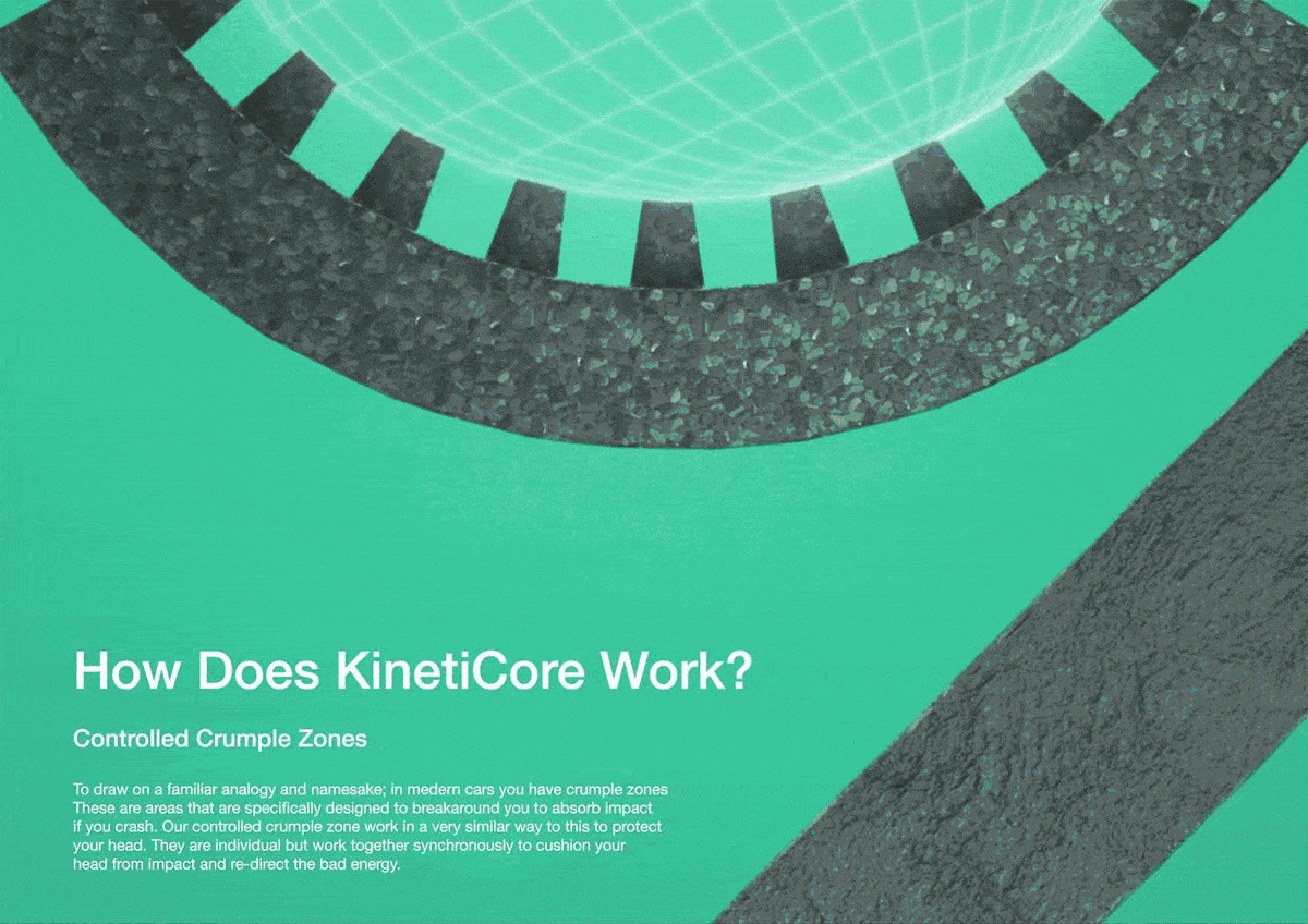 Pour expliquer le fonctionnement du système, Lazer fait un parallèle avec l’automobile : dans une voiture, des zones sont spécialement prévues pour se déformer en cas d’accident, de manière à dissiper l’énergie. Il serait possible de faire des voitures qui restent intactes ou presque après un crash, mais ce serait bien plus dangereux pour les occupants. Le KinetiCore, c’est pareil : en cas de chute, les picots se déformeront plus facilement qu’une coque d’un seul tenant, absorbant ainsi mieux le choc dans toutes les directions.