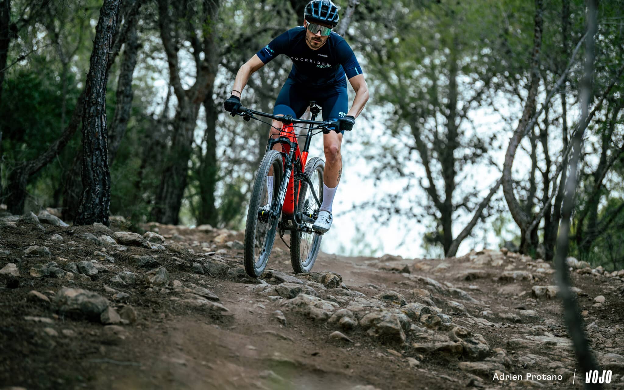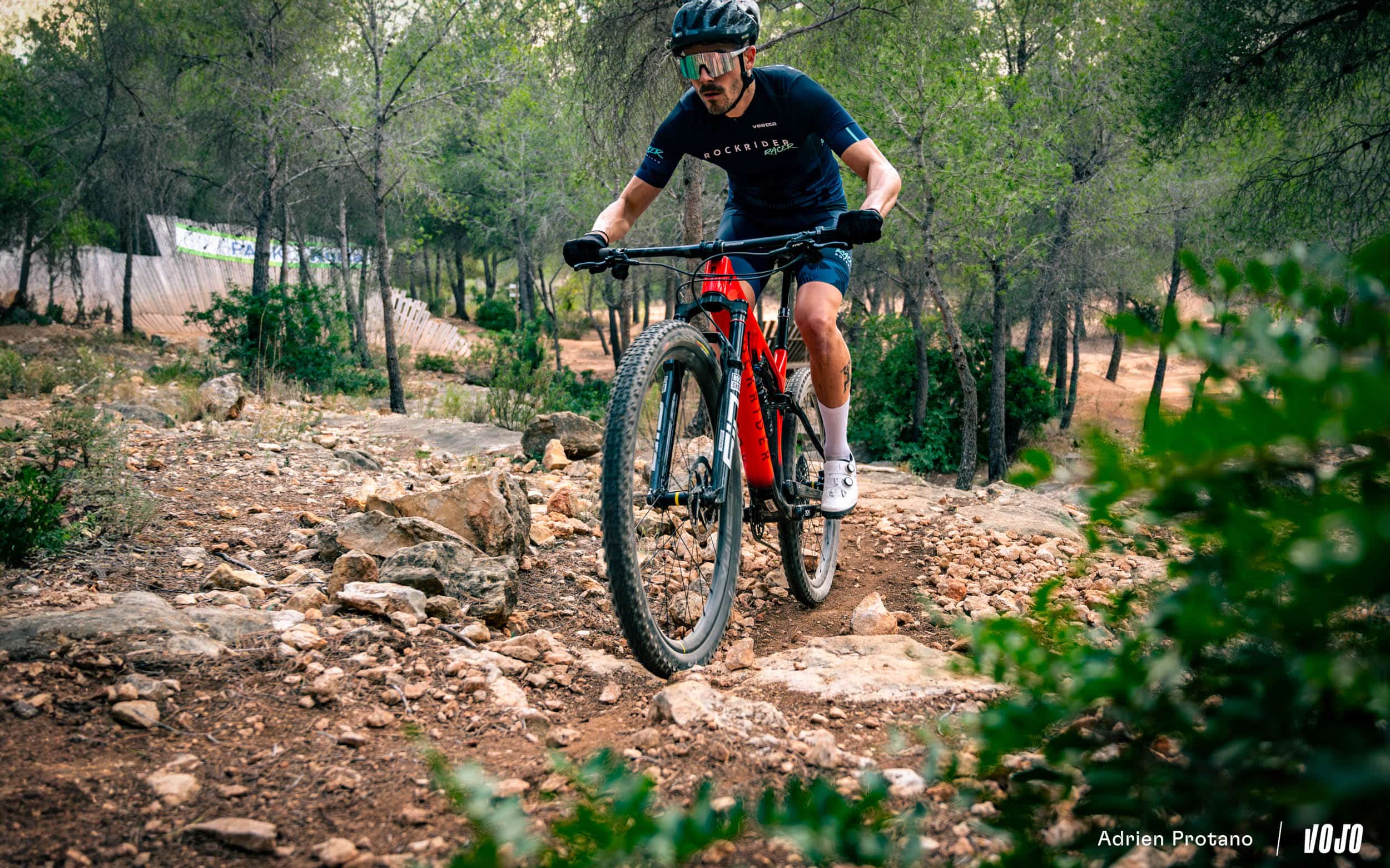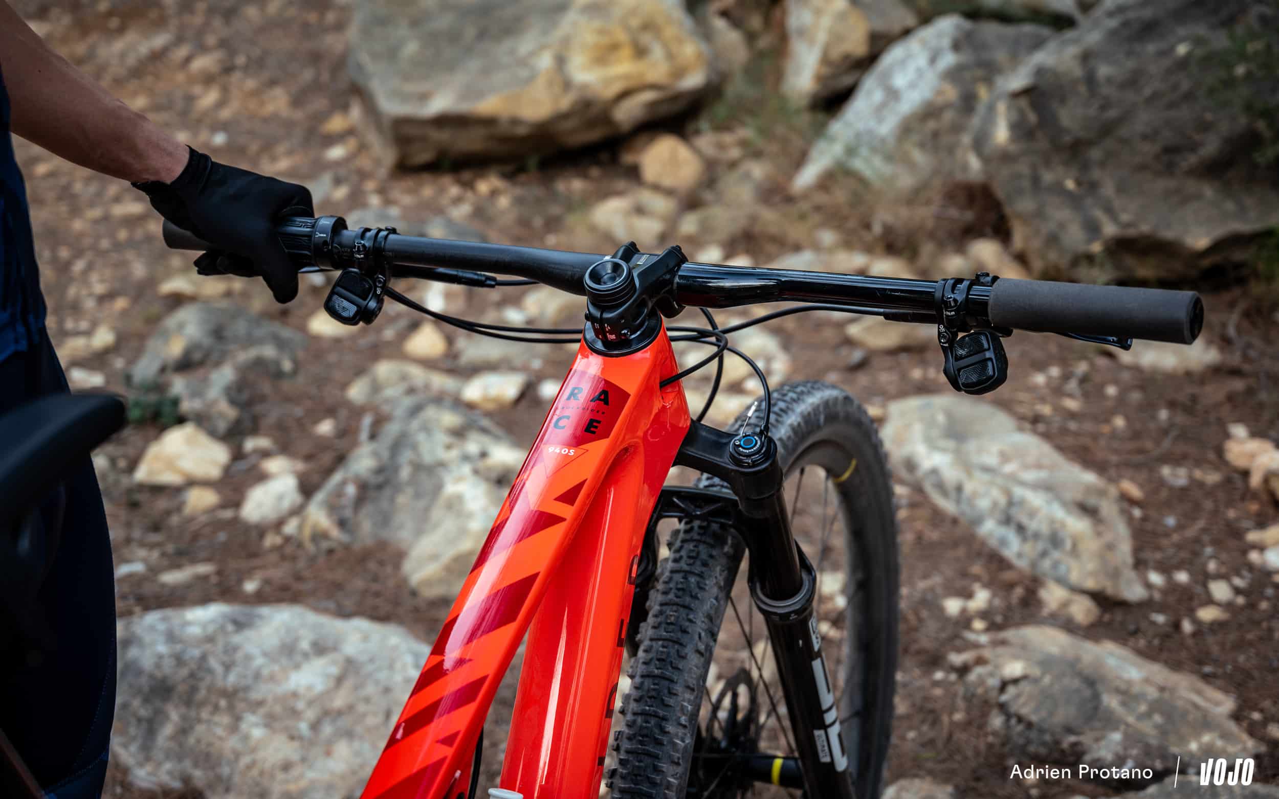 Avant toute chose, il nous faut rappeler qu’il ne s’agit pas ici d’un test en bonne et due forme comme on l’entend traditionnellement sur Vojo, c’est-à-dire réalisé pendant plusieurs semaines sur nos circuits d’essai habituels, mais bien seulement d’une prise en main en amont de la sortie du vélo. Si une telle entrevue avec le vélo ne nous permet évidemment pas de fournir des conclusions précises et poussées sur ce Rockrider Race 940 S, cela offre toutefois la possibilité de cerner les traits de caractère principaux du châssis et de pouvoir aiguiller sur le type d’usage et de pratiquants auquel ce nouveau Rockrider s’adresse.