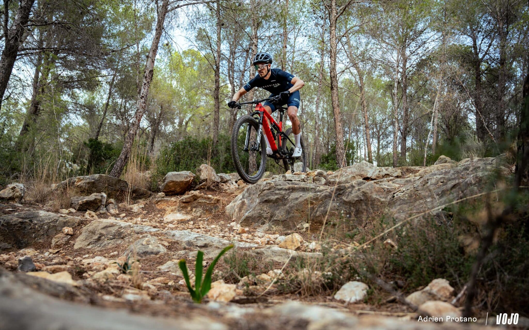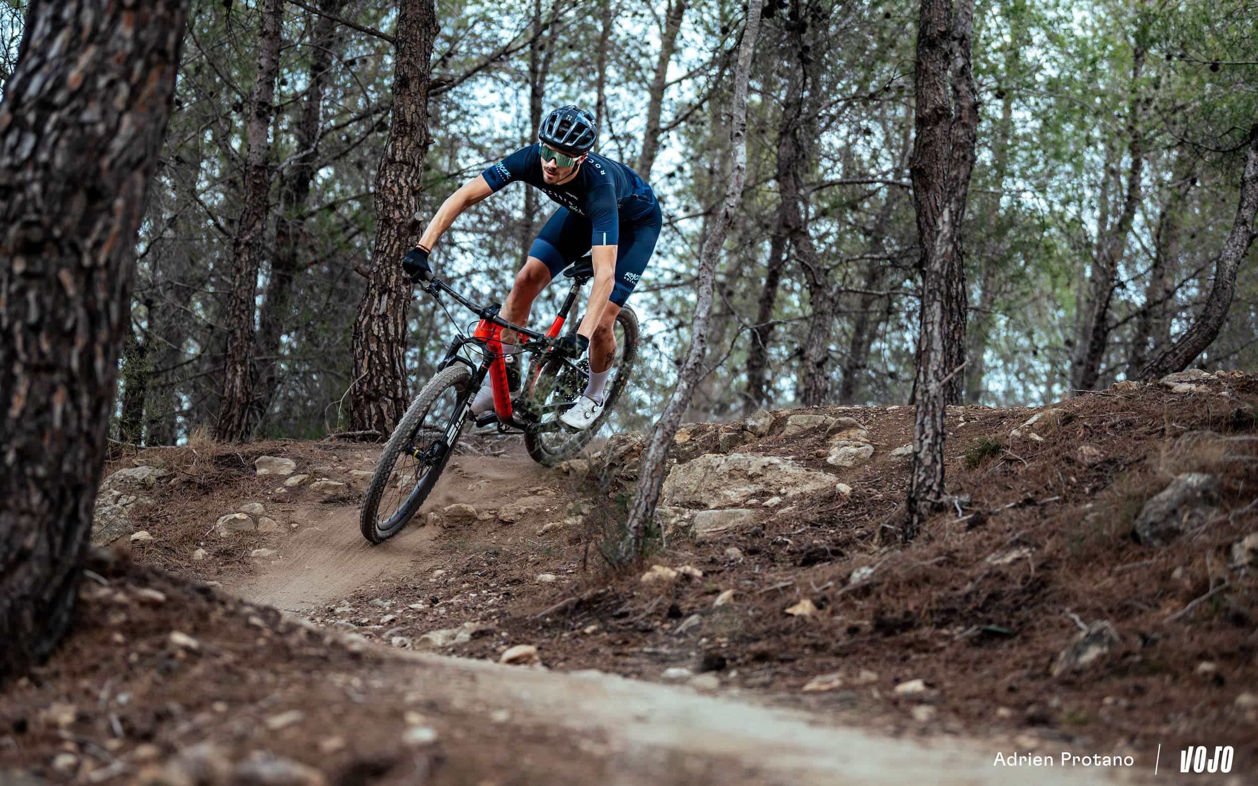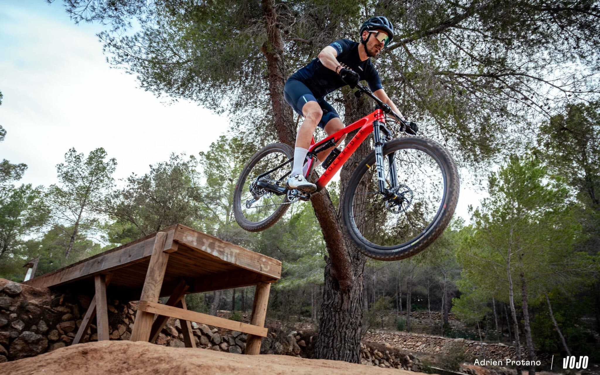 Avant toute chose, il nous faut rappeler qu’il ne s’agit pas ici d’un test en bonne et due forme comme on l’entend traditionnellement sur Vojo, c’est-à-dire réalisé pendant plusieurs semaines sur nos circuits d’essai habituels, mais bien seulement d’une prise en main en amont de la sortie du vélo. Si une telle entrevue avec le vélo ne nous permet évidemment pas de fournir des conclusions précises et poussées sur ce Rockrider Race 940 S, cela offre toutefois la possibilité de cerner les traits de caractère principaux du châssis et de pouvoir aiguiller sur le type d’usage et de pratiquants auquel ce nouveau Rockrider s’adresse.