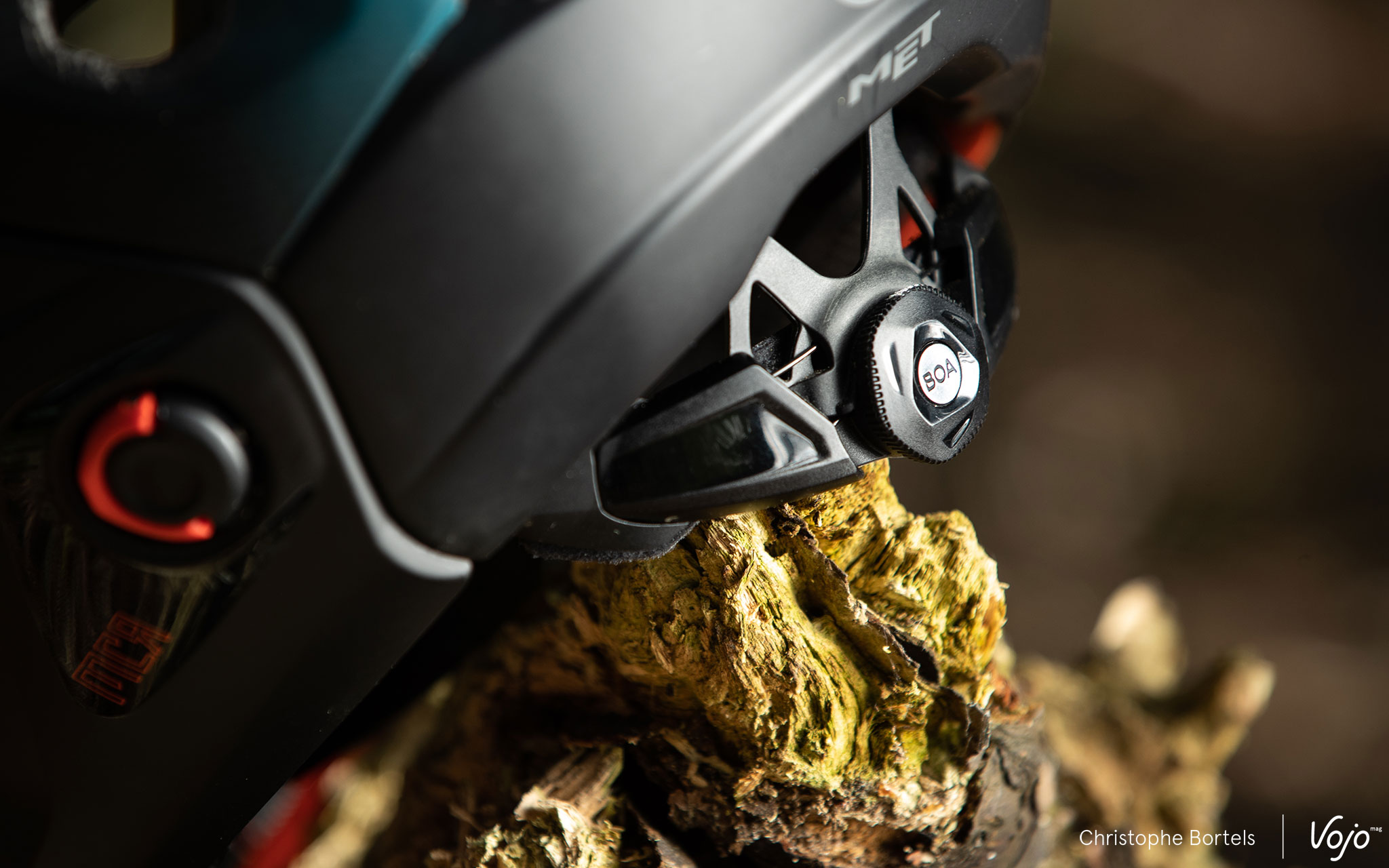 Au niveau de la fermeture jugulaire, on constate avec plaisir que MET a mis de côté la boucle en D et le bouton pression – qui nous avaient peu convaincus lors de notre test en 2014 – pour adopter une solution magnétique Fidlock bien plus pratique et rapide. On aligne les deux parties pour fermer automatiquement grâce aux aimants, on les fait glisser l’une sur l’autre pour ouvrir.
