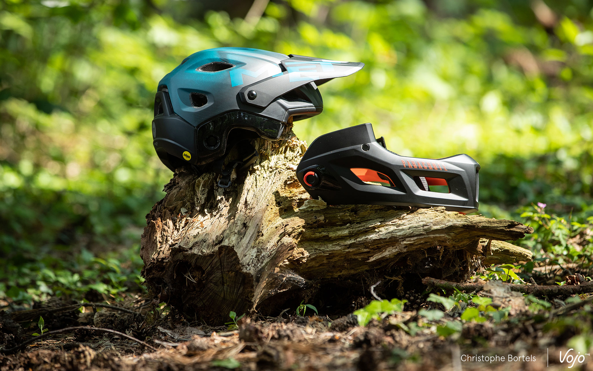 Une fois en mode « open face », on retrouve le confort de l’intégral, il faut toutefois veiller à placer le réglage occipital à la bonne hauteur pour assurer un bon maintien du casque. Sans être léger et ventilé comme un pur casque de XC, le Parachute s’en sort bien et fait le boulot pour un usage trail ou all-mountain qui ne nécessite pas la protection supplémentaire apportée par une mentonnière. Niveau look, il paraît un peu gros sur la tête, mais nos deux testeurs étaient pile entre deux tailles et ont opté pour la plus grande des deux – Medium – pour pouvoir au mieux comparer avec l’ancien Parachute, lui aussi utilisé en M. On pourrait donc sans doute retrouver une esthétique un peu plus fit avec un Small et des mousses de joues plus fines.