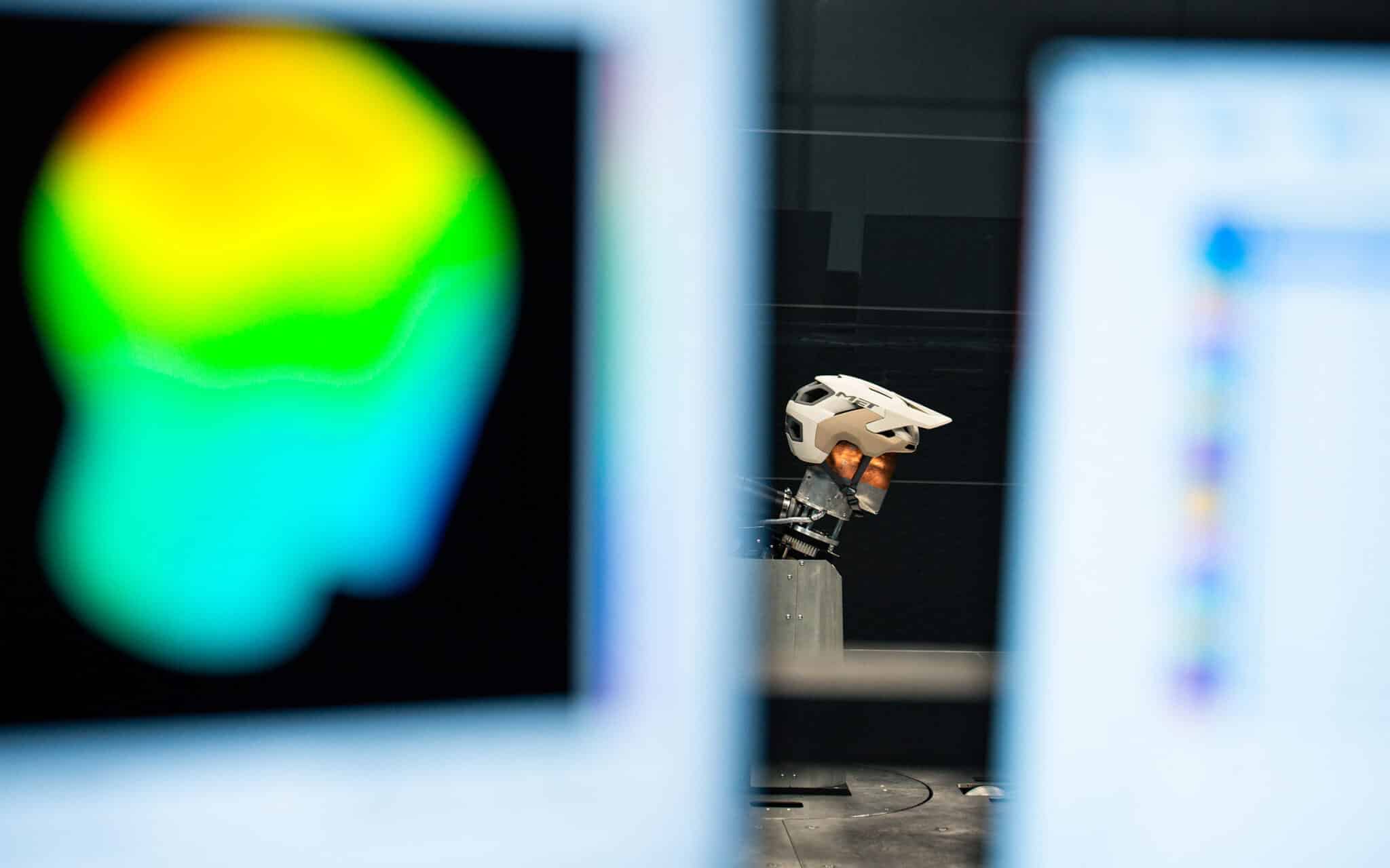 De manière plus pragmatique, le casque est placé sur un modèle de tête qui peut être chauffé et sur lequel est placé une série de capteurs de température. De l’air est ensuite projeté au sein du tunnel et la marque observe les baisses de température, leur rapidité et les zones plus ou moins touchées par la ventilation. À titre d’exemple, la marque a mesuré une différence de l’ordre de 23,5 % en termes d’efficacité de l’aération par rapport au Roam.