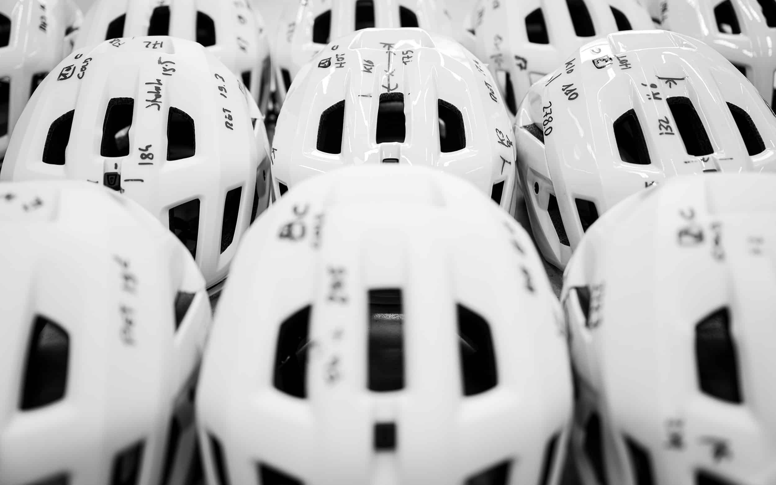 Pour nous expliquer les recherches qu’elle a entreprises sur le niveau de protection, la marque a emmené dans ses valises lors de cette présentation une série de casques prototypes destinés à être testés.