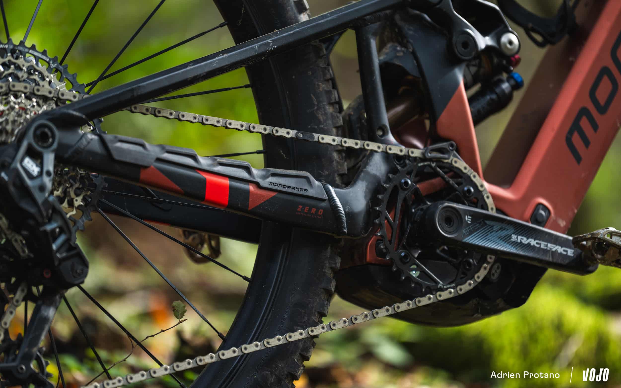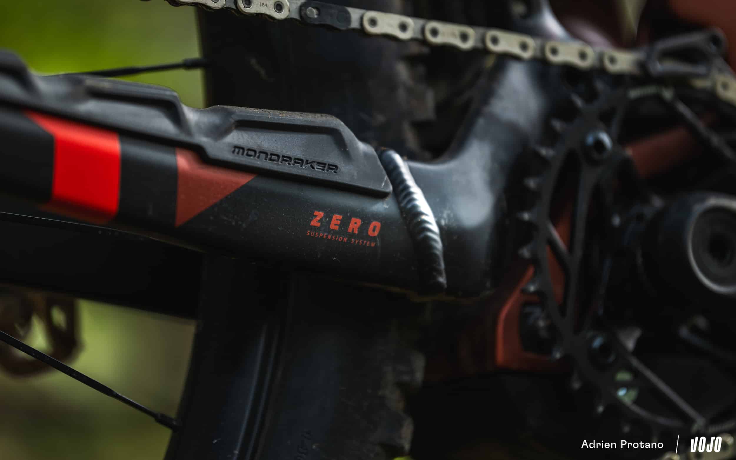 On rassure les aficionados de la marque, Mondraker a conservé sa cinématique de suspension baptisée « Zero », tout en l’ajustant au vu des critiques émises sur la précédente génération : l’anti-squat a été revu à la baisse tandis que le leverage ratio est plus important selon la marque (si cela ne vous parle pas, le lexique est juste ici).
