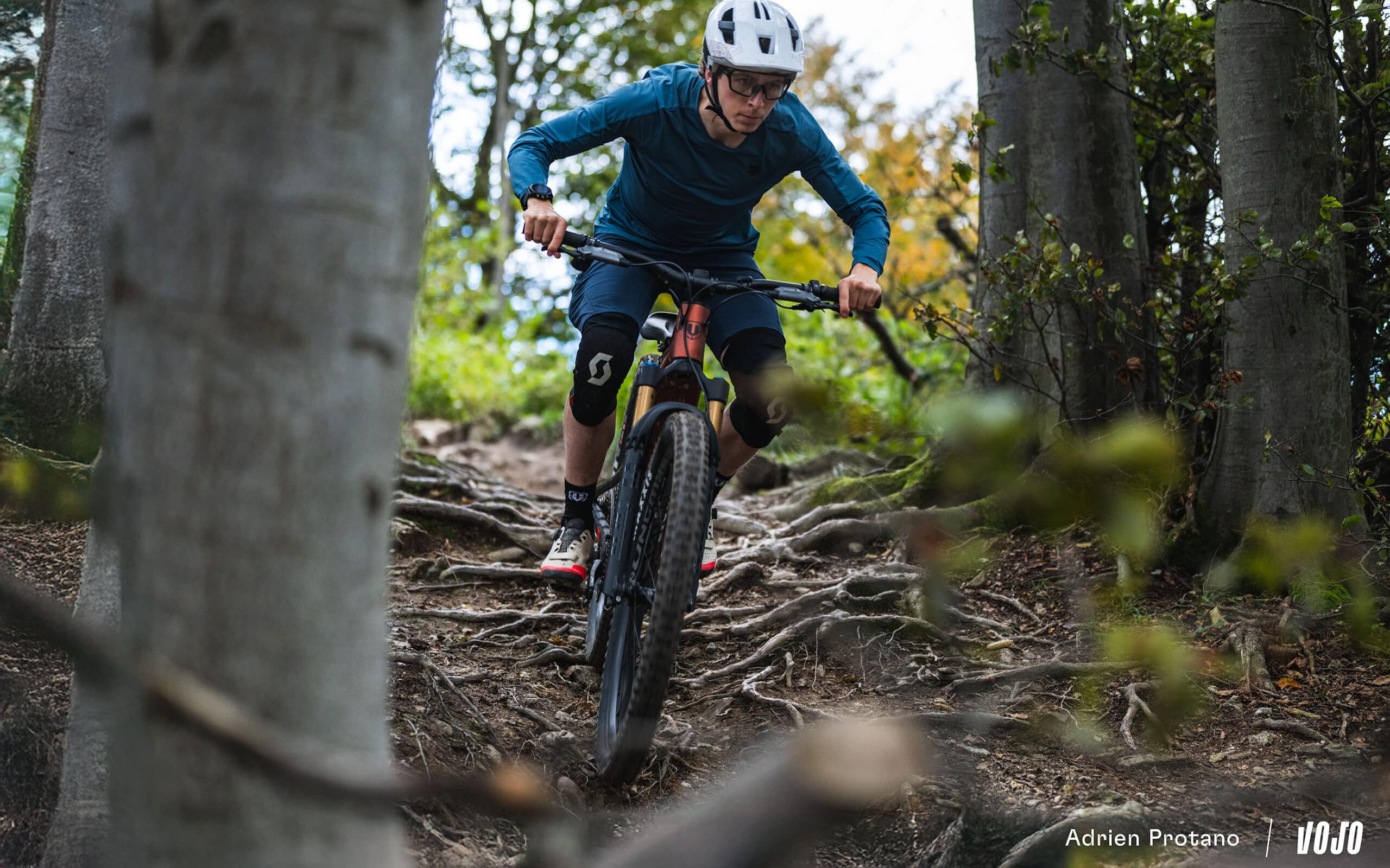 Malgré cette erreur de casting sur les pneumatiques, le Mondraker Crafty est une véritable bombe en montée ! Le vélo place naturellement le pilote dans une posture idéale pour attaquer les ascensions techniques, avec un tube de selle suffisamment redressé et une roue avant collée au sol. C’est peut-être le point sur lequel le Crafty nous a le plus impressionnés par rapport à la génération précédente… On vous en parlait lors de notre test, le Crafty que l’on connaissait jusqu’à présent n’était pas le plus simple à appréhender dans les montées techniques avec un difficile équilibre ; avec cette nouvelle génération, Mondraker a complètement revu ce défaut et le résultat n’est pas loin d’être parfait !