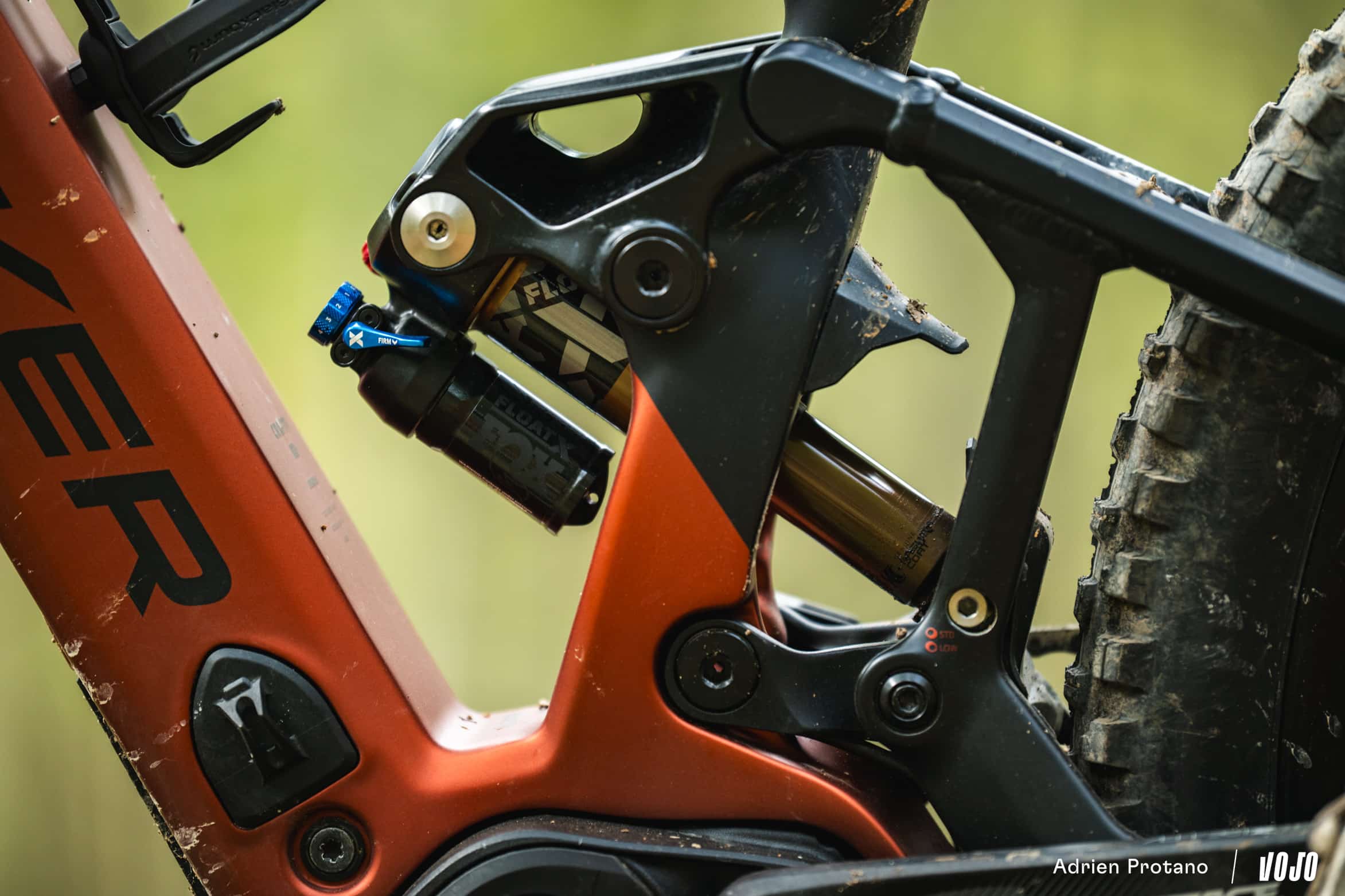 Mondraker explique avoir travaillé main dans la main avec Fox pour développer un réglage interne spécifique au vélo et collant parfaitement à sa cinématique. « Nous n’étions pas convaincus par le Float X dans cette dimension pour cette cinématique. Avec ces nouveaux réglages, on a trouvé quelque chose de bien plus convaincant ! Il est possible de monter un autre amortisseur ou même d’opter pour un modèle à ressort, mais croyez-moi vous n’en voudrez pas d’autre », continue Israël.