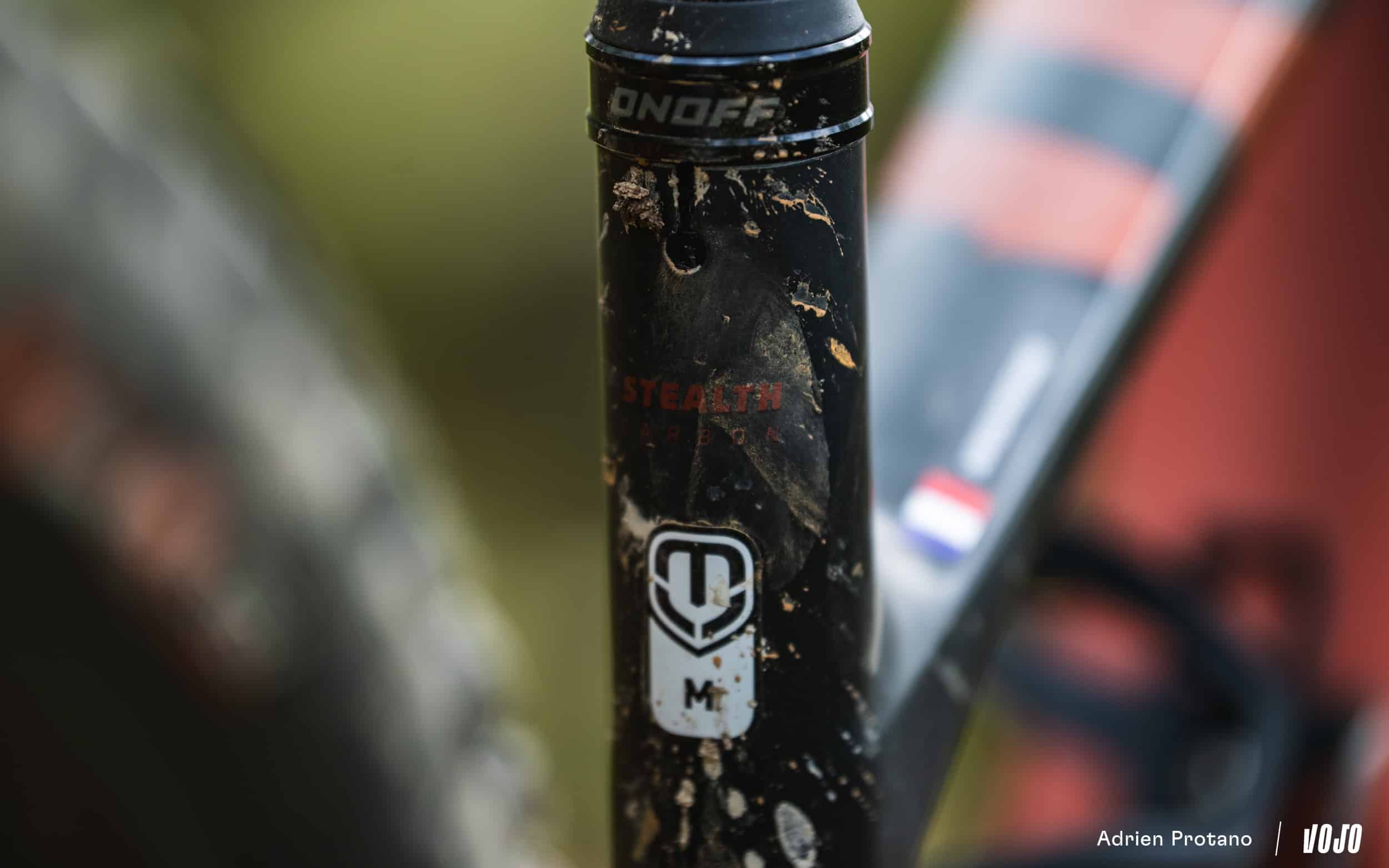 Nous n’avons pas eu l’occasion de les changer durant notre virée en Italie, mais les pneumatiques choisis par Mondraker nous ont par contre posé plus de soucis. Outre l’argument de la traction pour la roue arrière, nous n’arrivons pas à comprendre pourquoi la marque espagnole a opté pour une section de 2.6… Sur le terrain, cela s’est traduit par un sentiment de flou constant et de manque d’accroche. Bref, cela ne nous a pas empêchés d’emmener le vélo sur les spéciales italiennes, mais un remplacement par une monte à la section plus réduite nous semble tout indiqué. Dans la boue belge, où nous avons pu aussi le rouler un peu à notre retour, l’impression est la même et on recommande vraiment un changement.