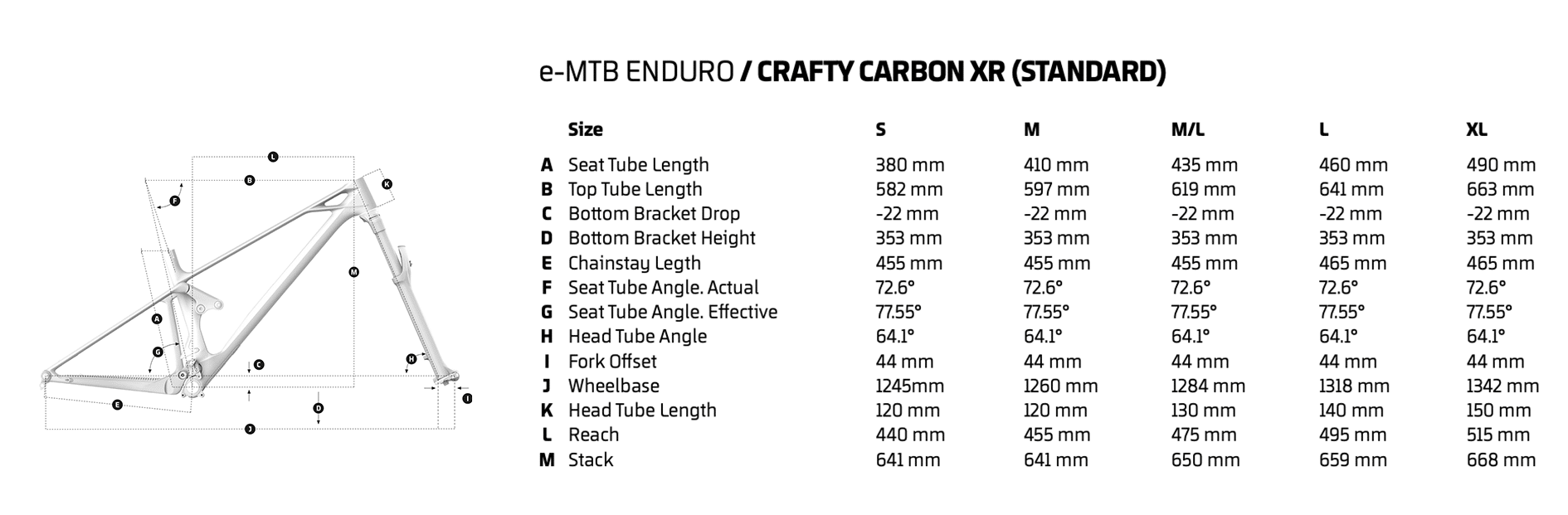 Véritable marque de fabrique de Mondraker et signature des châssis de la marque, le Crafty répond évidemment à la « Forward Geometry ». Pour rappel, et en rapide résumé, cette conception de géométrie se matérialise par un cadre au triangle avant (ou plus précisément au reach) important, associé à une potence (très) courte. Mais, pour ce nouveau Crafty, Mondraker a revu les tailles de ses vélos et introduit un nouveau M/L.