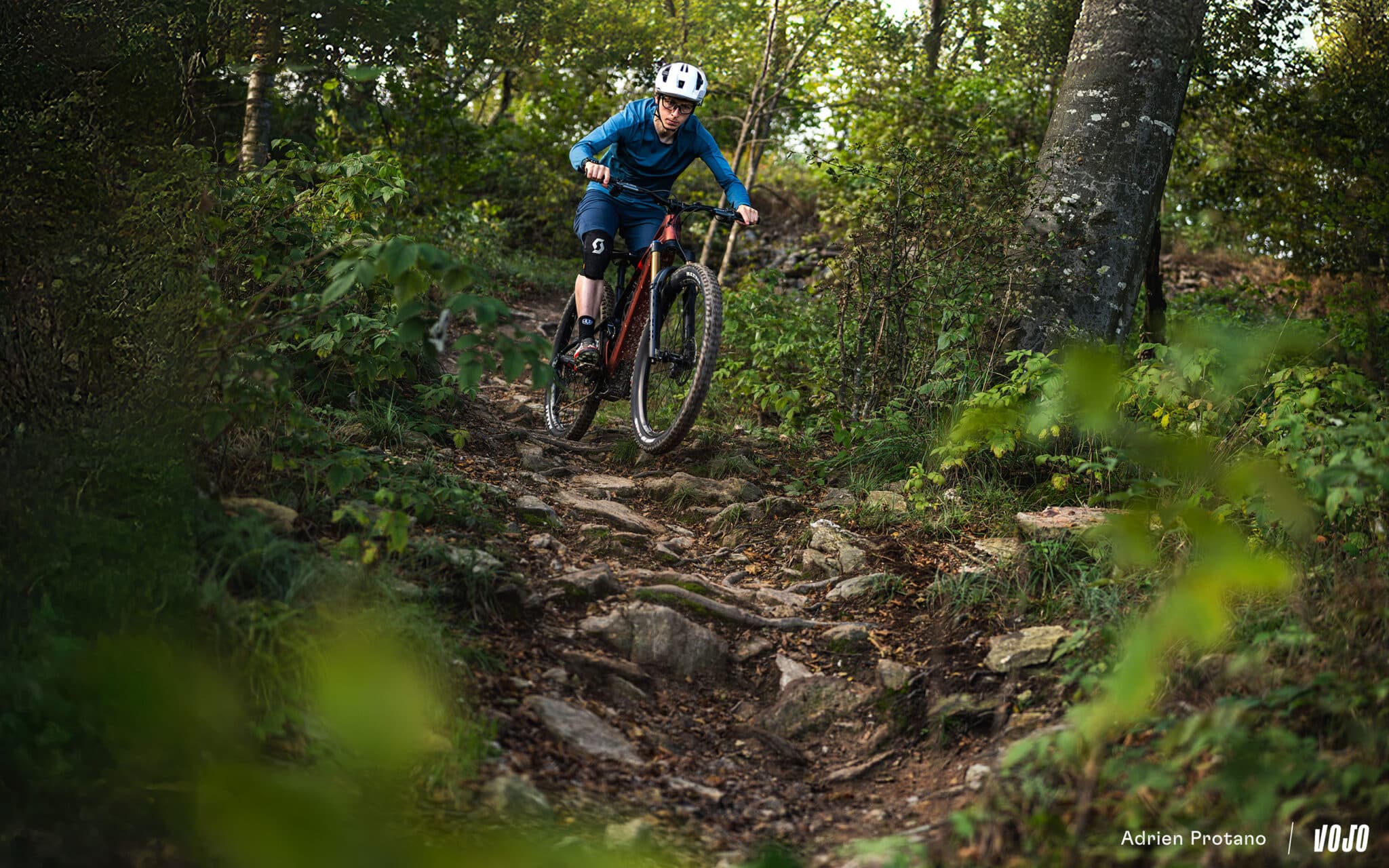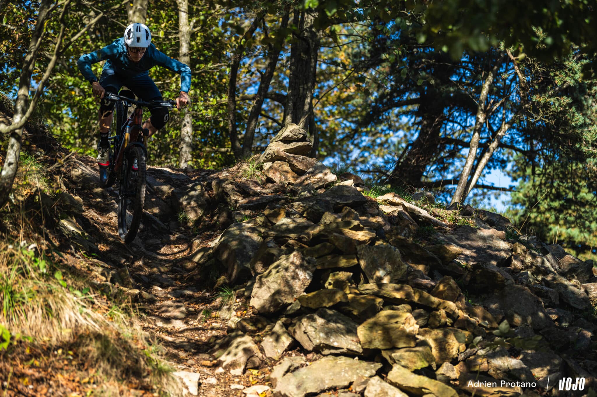 Malgré cette erreur de casting sur les pneumatiques, le Mondraker Crafty est une véritable bombe en montée ! Le vélo place naturellement le pilote dans une posture idéale pour attaquer les ascensions techniques, avec un tube de selle suffisamment redressé et une roue avant collée au sol. C’est peut-être le point sur lequel le Crafty nous a le plus impressionnés par rapport à la génération précédente… On vous en parlait lors de notre test, le Crafty que l’on connaissait jusqu’à présent n’était pas le plus simple à appréhender dans les montées techniques avec un difficile équilibre ; avec cette nouvelle génération, Mondraker a complètement revu ce défaut et le résultat n’est pas loin d’être parfait !
