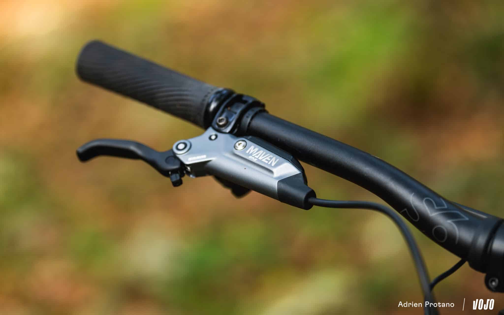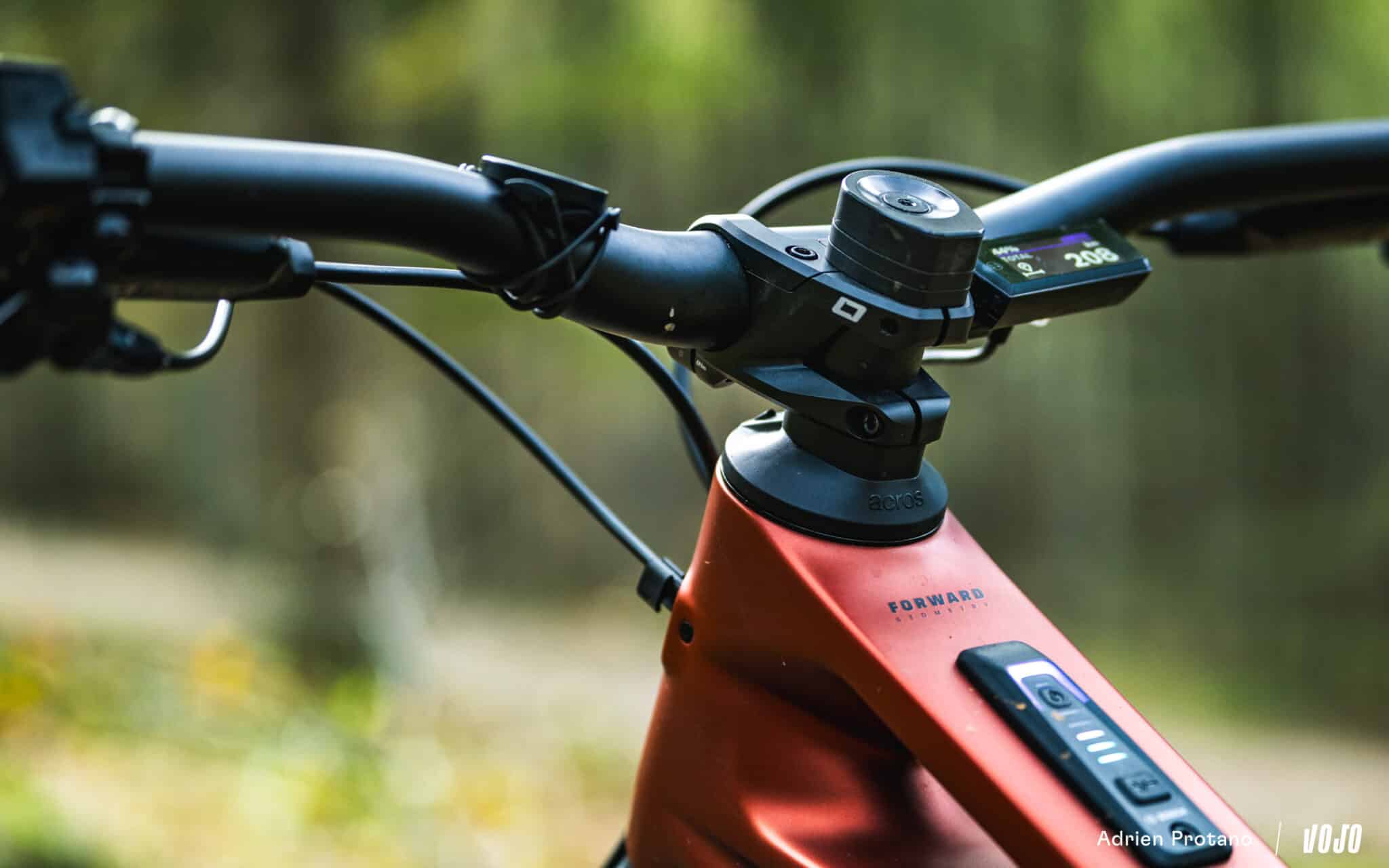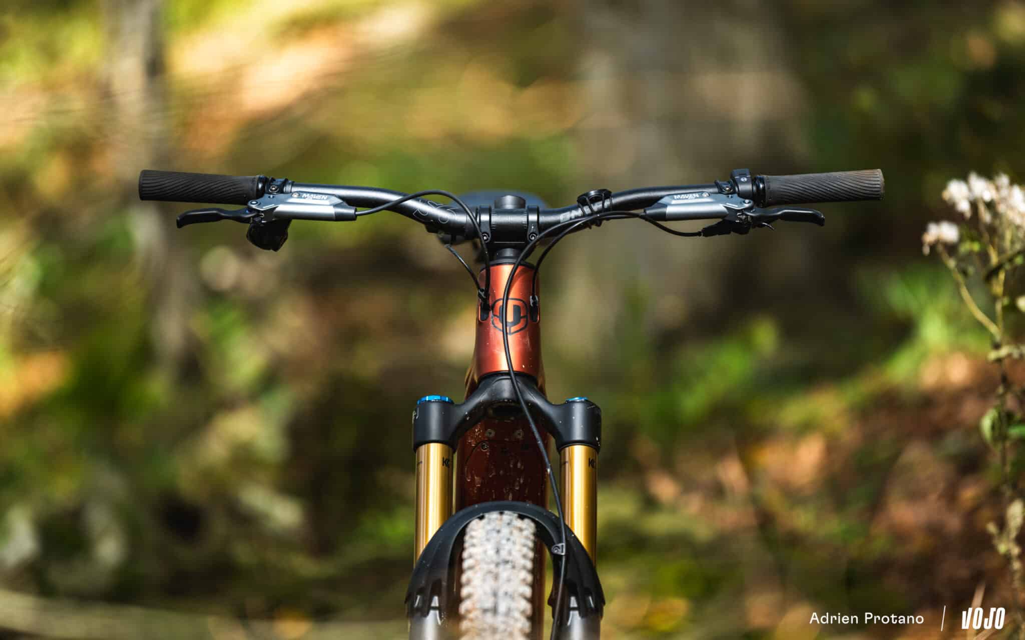 De série, le Crafty arrive avec un poste de pilotage surélevé par plusieurs entretoises. Si cela permet à chacun d’obtenir la hauteur de pilotage qui lui convient le plus, on ne pourra que vous conseiller d’essayer de l’abaisser d’une ou de plusieurs entretoises. Avec sa géométrie spécifique, une hauteur de pilotage plus basse sur ce Crafty permet de charger naturellement davantage l’avant du vélo et d’obtenir un comportement bien plus convaincant. Nous avons également recoupé le cintre de 800 mm de série, pour le réduire à 760 mm, plus en phase avec notre gabarit.