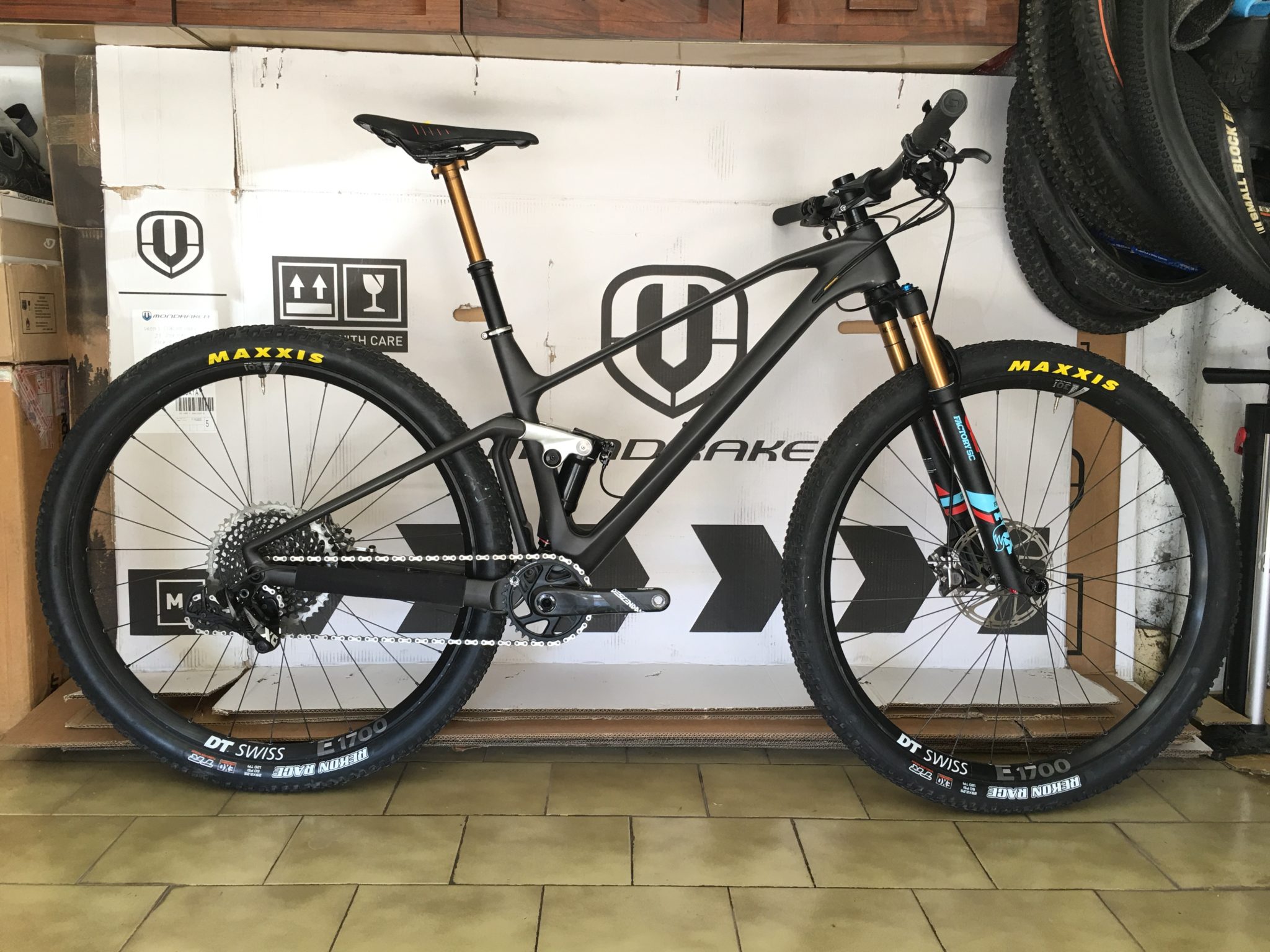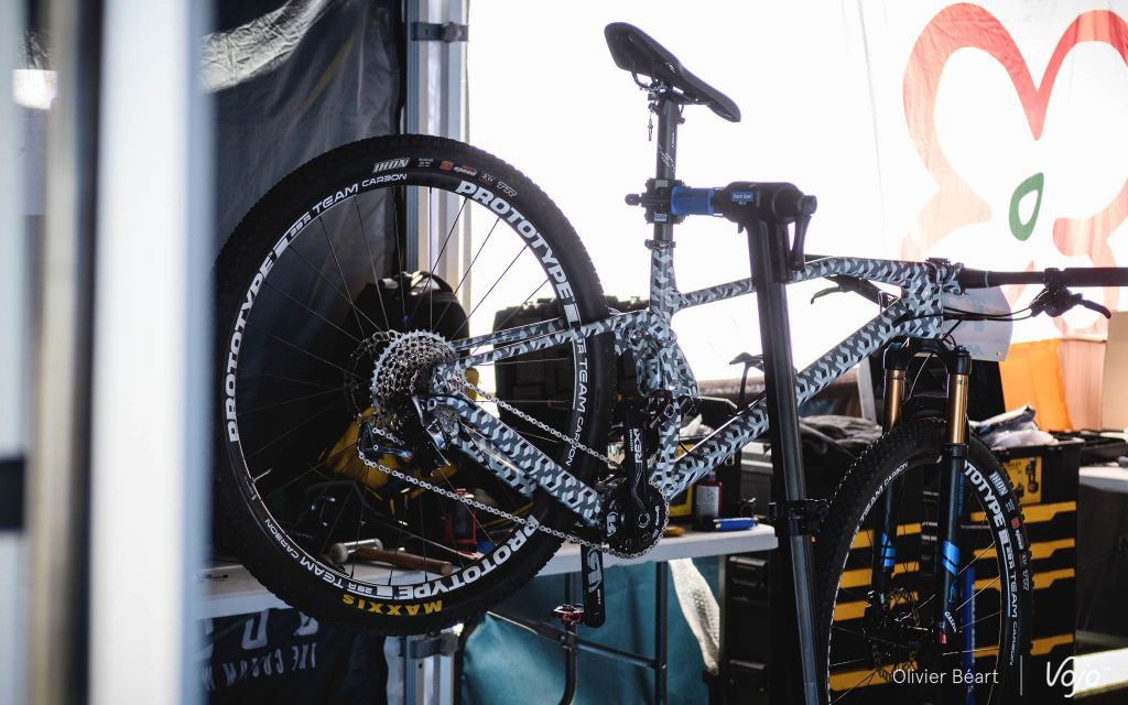 - F-Podium (3 999 € / 11,49 kg) : transmission Sram GX/NX Eagle, freins Shimano MT501, roues Mavic Crossmax, périphériques Onoff