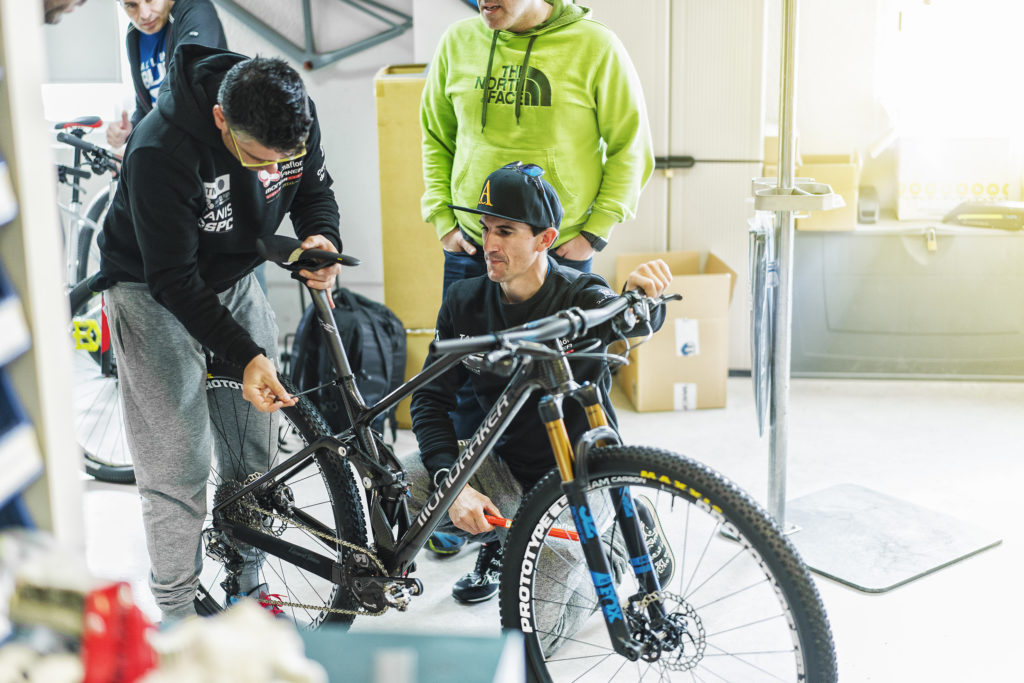 Par ailleurs, les athlètes du team Primaflor-Mondraker ont été fortement intégrés au développement. Les bureaux de Mondraker à Alicante abritent également les bureaux du team, les échanges et retours ont donc été grandement facilités. La première phase s’est déroulée en interne mais dès début 2017, Carlos Coloma a commencé à tester le premier prototype et a ensuite mis à l’épreuve de très nombreuses versions. D’autres membres du team comme Raiza Goulao ou Ondrej Cink l’ont rejoint par la suite.