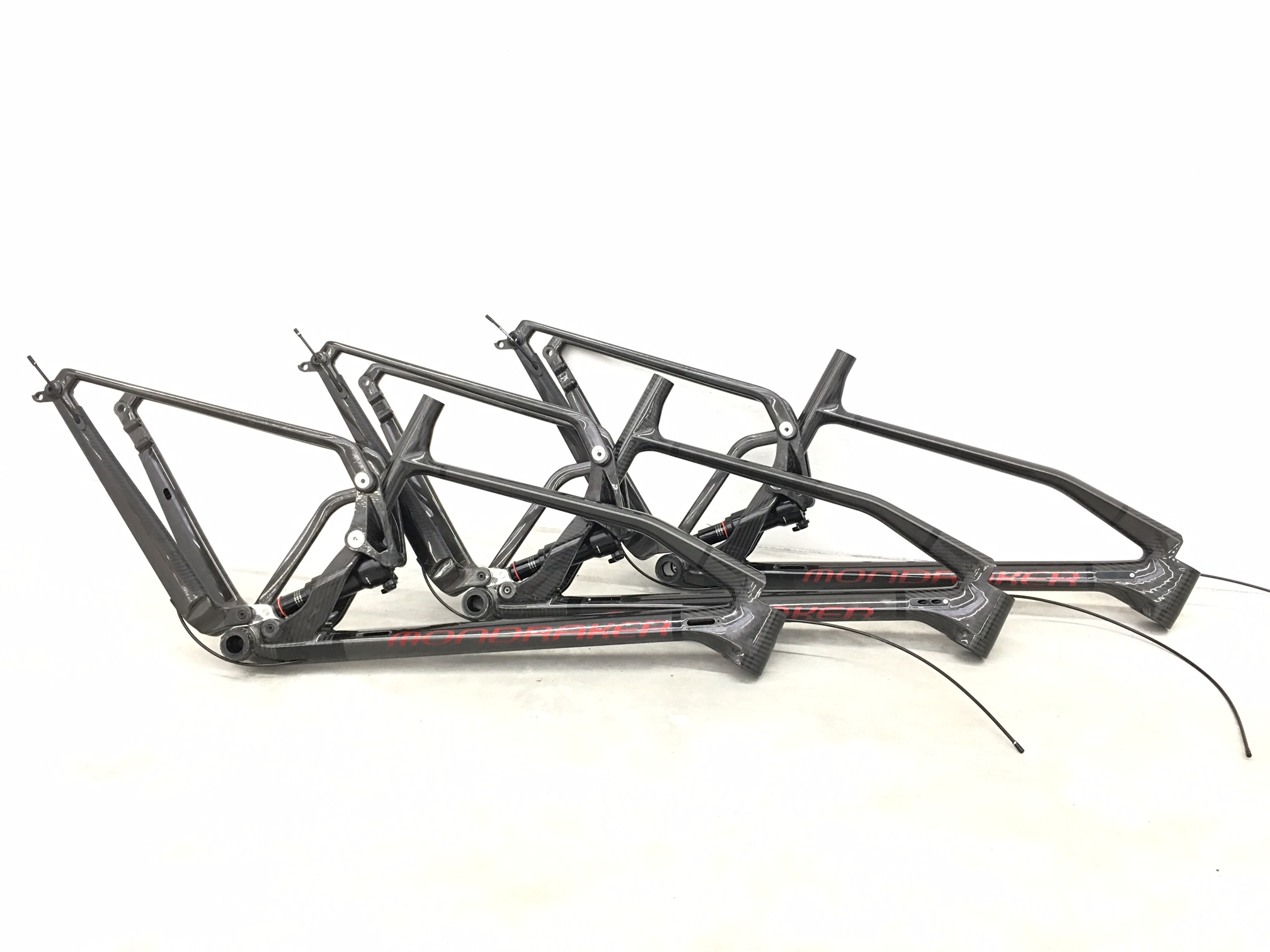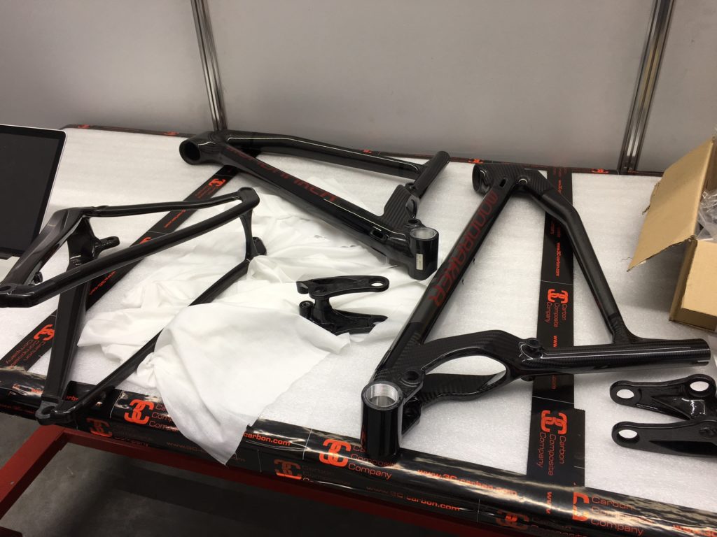 Pour le cadre, Mondraker s’est rapproché de Carbon Composites Company (3C), le deuxième fournisseur européen de fibres de carbone. Cette entreprise allemande, qui travaille habituellement pour Audi, BMW, Mercedes ou l’aéronautique n’avait jamais réalisé de cadre ou de pièce de vélo. Du propre aveu de Mondraker, les premiers pas furent donc difficiles mais le résultat est à la hauteur de leurs attentes. Cette collaboration a finalement donné naissance à un procédé à la pointe de la technologie appelé Stealth Air Carbon.
