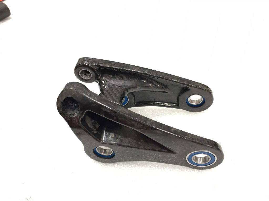 Andres Climent, ingénieur chez Mondraker et l’un des pères de ce nouveau F-Podium, nous explique pourquoi : « Une biellette inférieure en carbone, extrêmement légère, a été envisagée mais on n’a finalement pas retenu cette solution pour des raisons de fiabilité. Sur notre cinématique, cette pièce travaille en traction et c’est l’un des points faibles du carbone, par ailleurs très résistant en compression. L’aluminium offre donc bien plus de garanties pour l’utilisateur, même si la pièce est un peu plus lourde. »