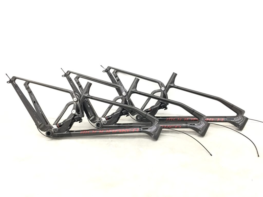 Le cadre, censé offrir le meilleur rapport poids/résistance du marché, passe juste sous la barre des 2 kg avec 1987g sans amortisseur. Le savoir-faire développé en Allemagne a ensuite été transféré au partenaire habituel de Mondraker à Taïwan. Tous les cadres seront fabriqués là-bas.