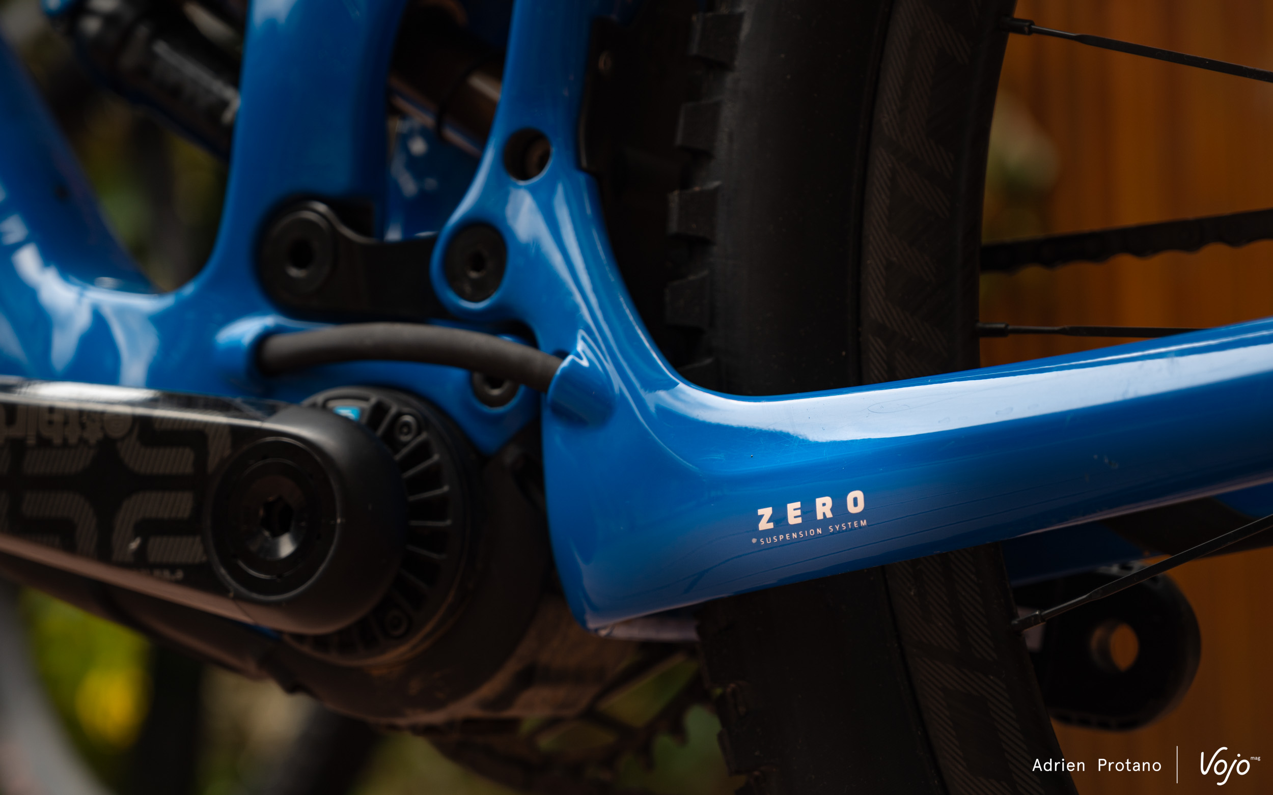 Du côté de la cinématique, on retrouve également une solution chère à la marque. Déclinée sur chacun des vélos de la marque, la cinématique Zero Suspension se retrouve également sur le Neat. Sur ce système à point de pivot virtuel, l’amortisseur est monté flottant entre les deux biellettes (cf. Lexique). Le nom provient, quant à lui, simplement de la promesse d’une cinématique offrant zéro pompage, zéro kick back et zéro verrouillage au freinage.