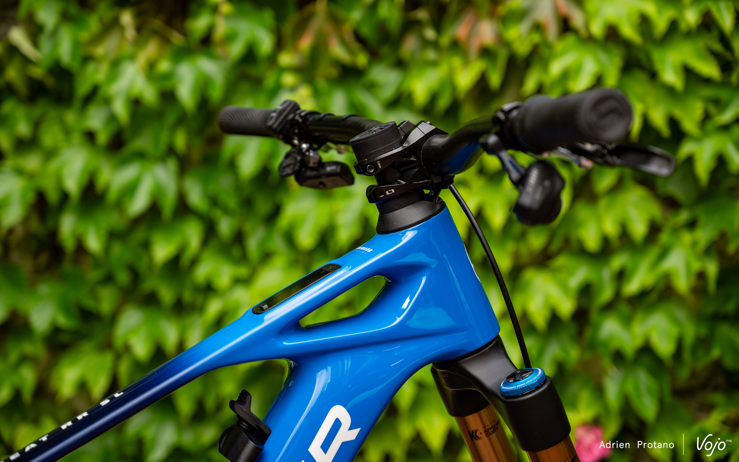 On trouve aussi quelques détails intéressants, qui témoignent du soin apporté à la conception de cette machine. On pense notamment à l’intégration complète de la câblerie qui rentre directement dans le cadre au niveau de la douille de direction.