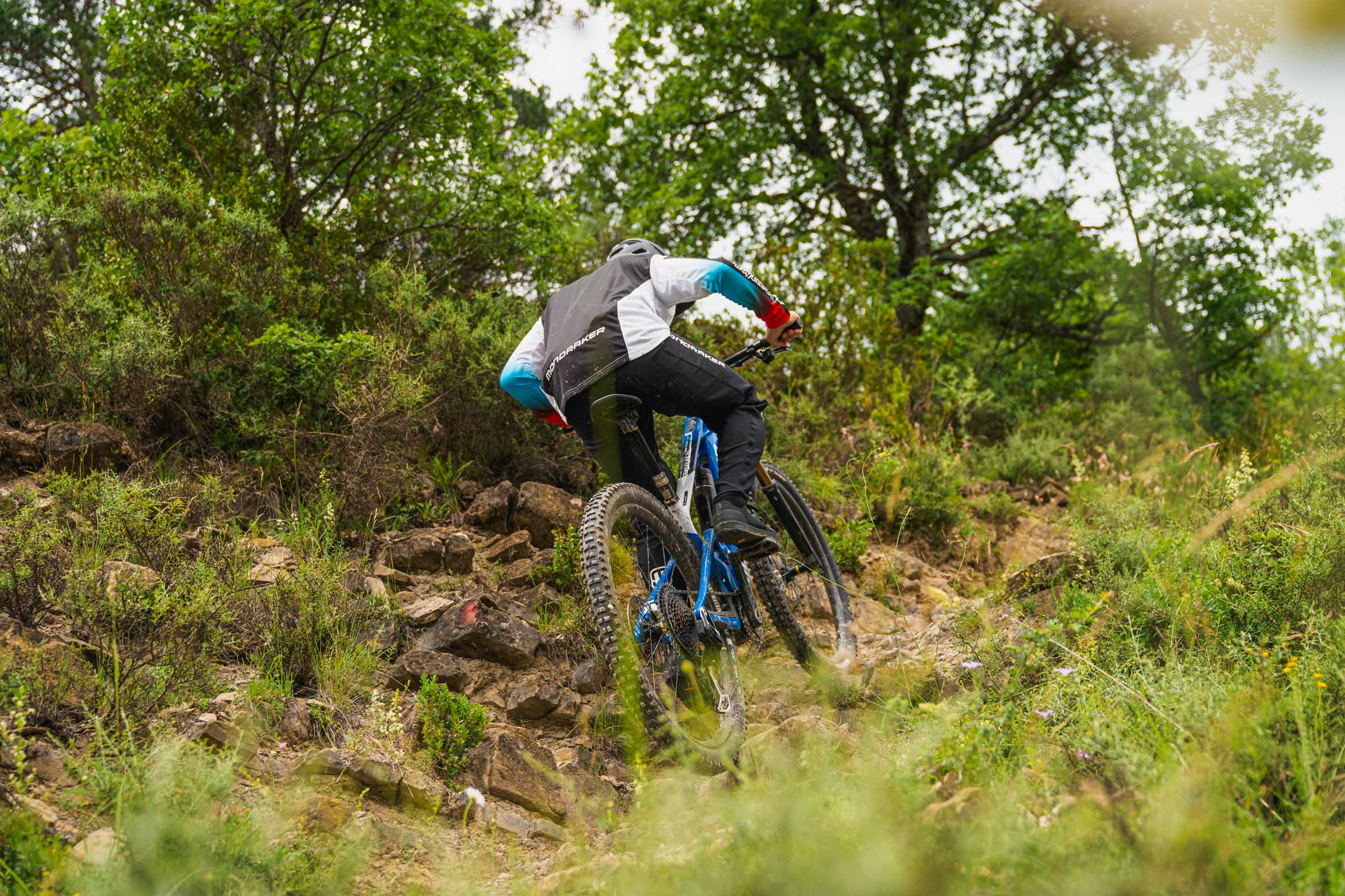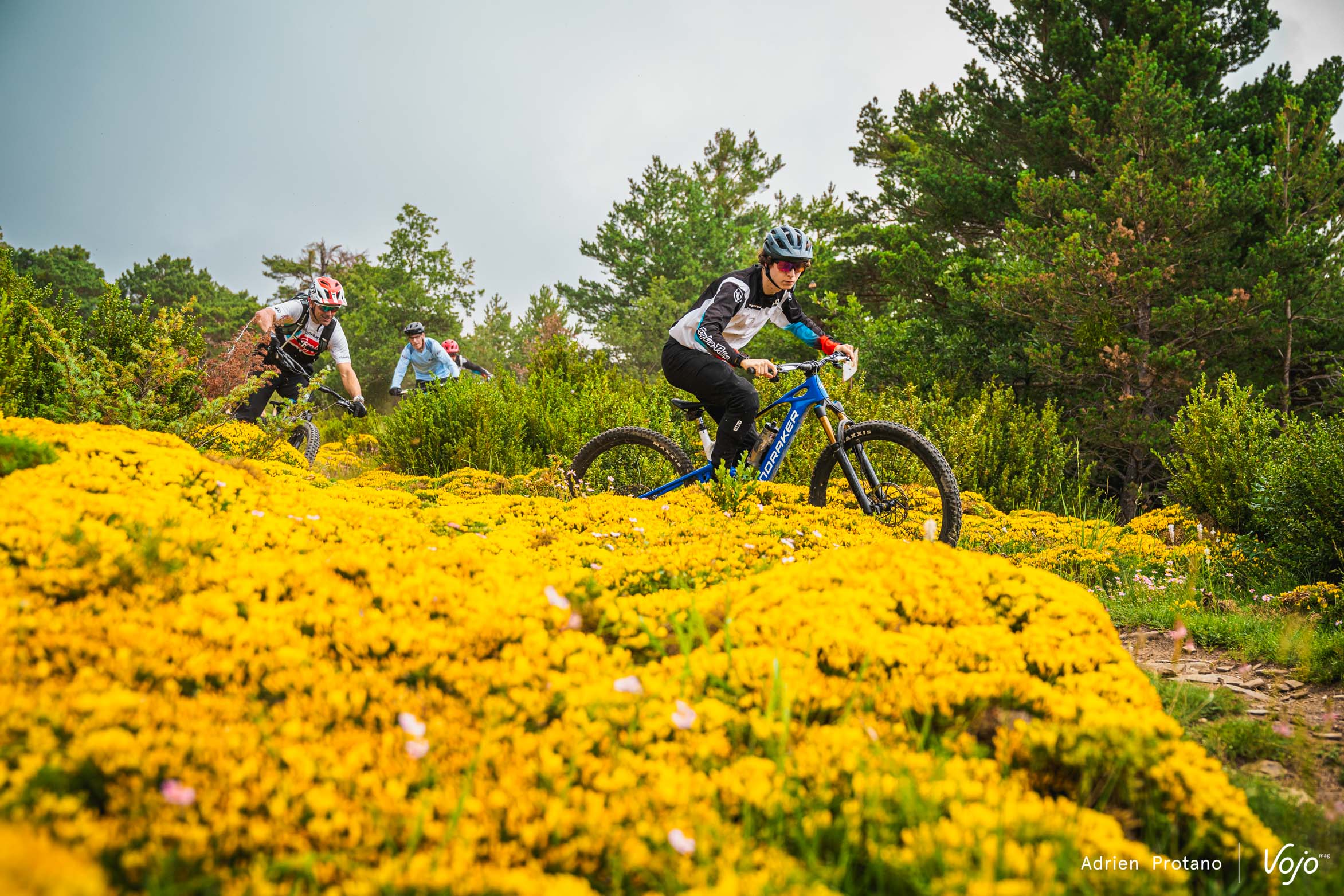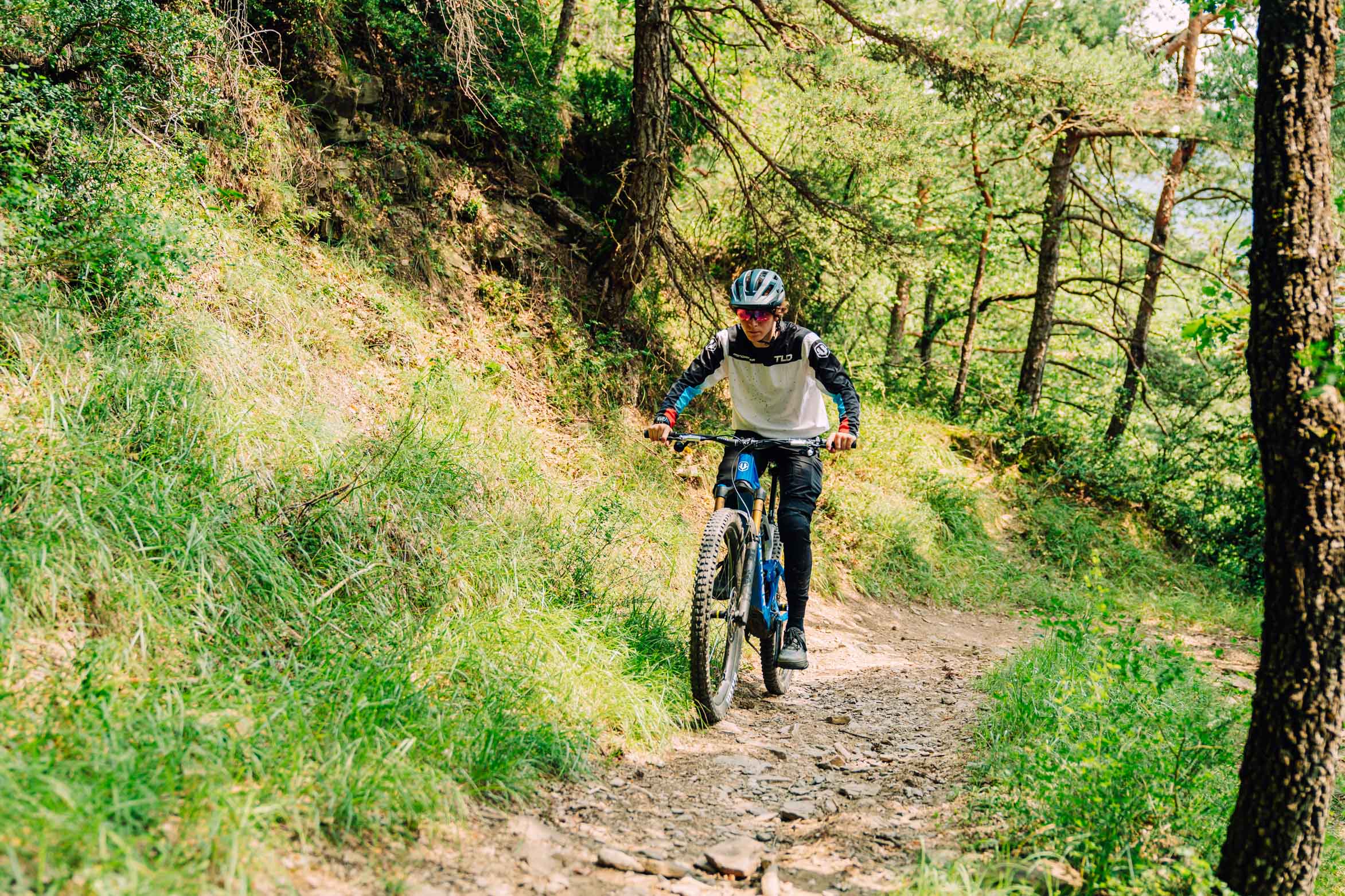 Après avoir rejoint le début des singletracks, place à la montée. Si la première partie de l’ascension se fait sur des chemins relativement larges, c’est ensuite sur de plus petits chemins présentant de nombreuses cassures et mouvements de terrain que l’on grimpe.