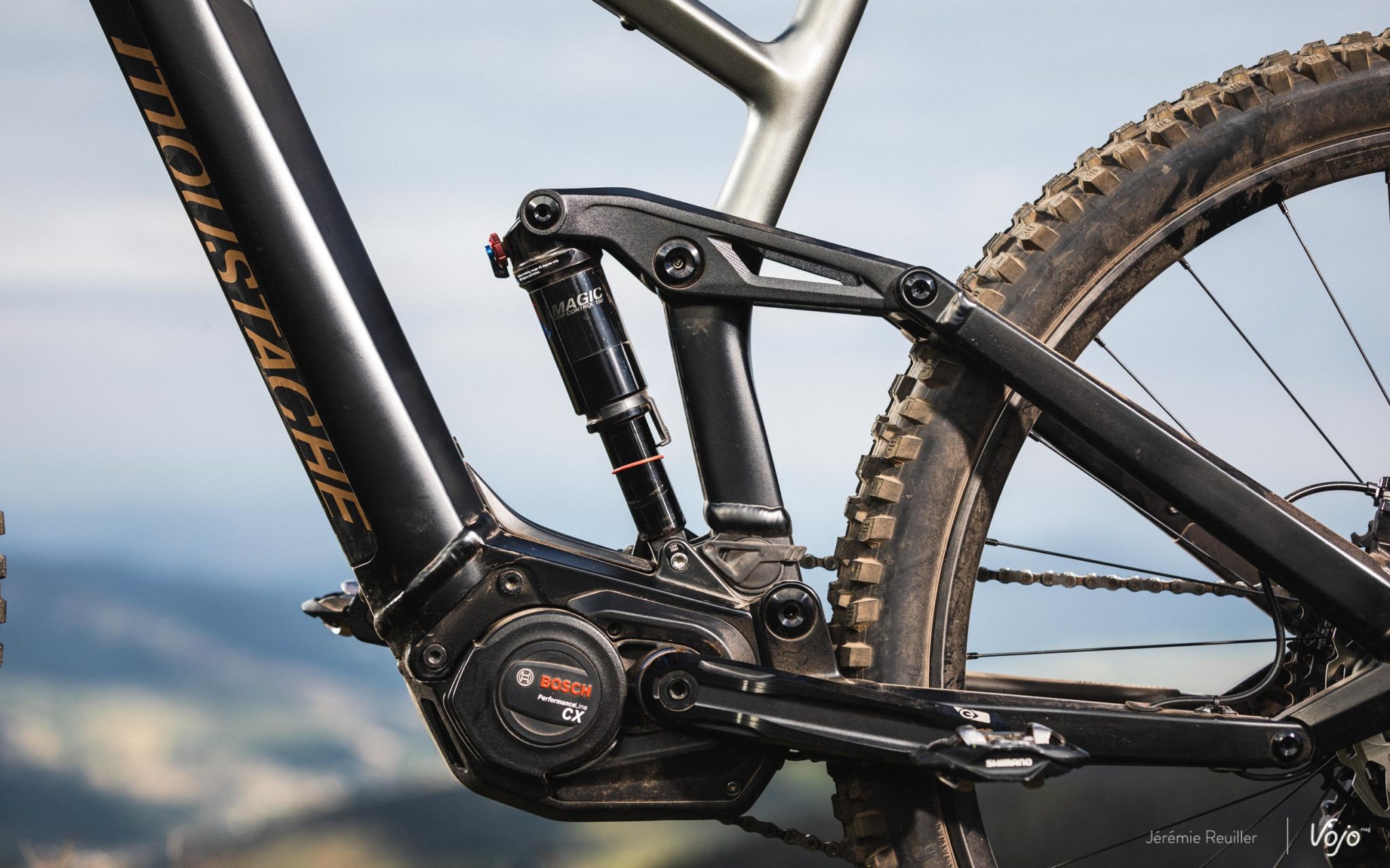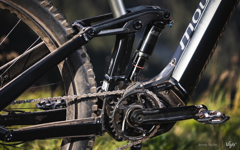 Vu la présence de grandes roues, le “flip chip” situé au niveau de l’ancrage inférieur de l’amortisseur est désormais placé en position basse. On note aussi l’apparition d’une nouvelle biellette évidée et affinée, plus esthétique et légère que la précédente.