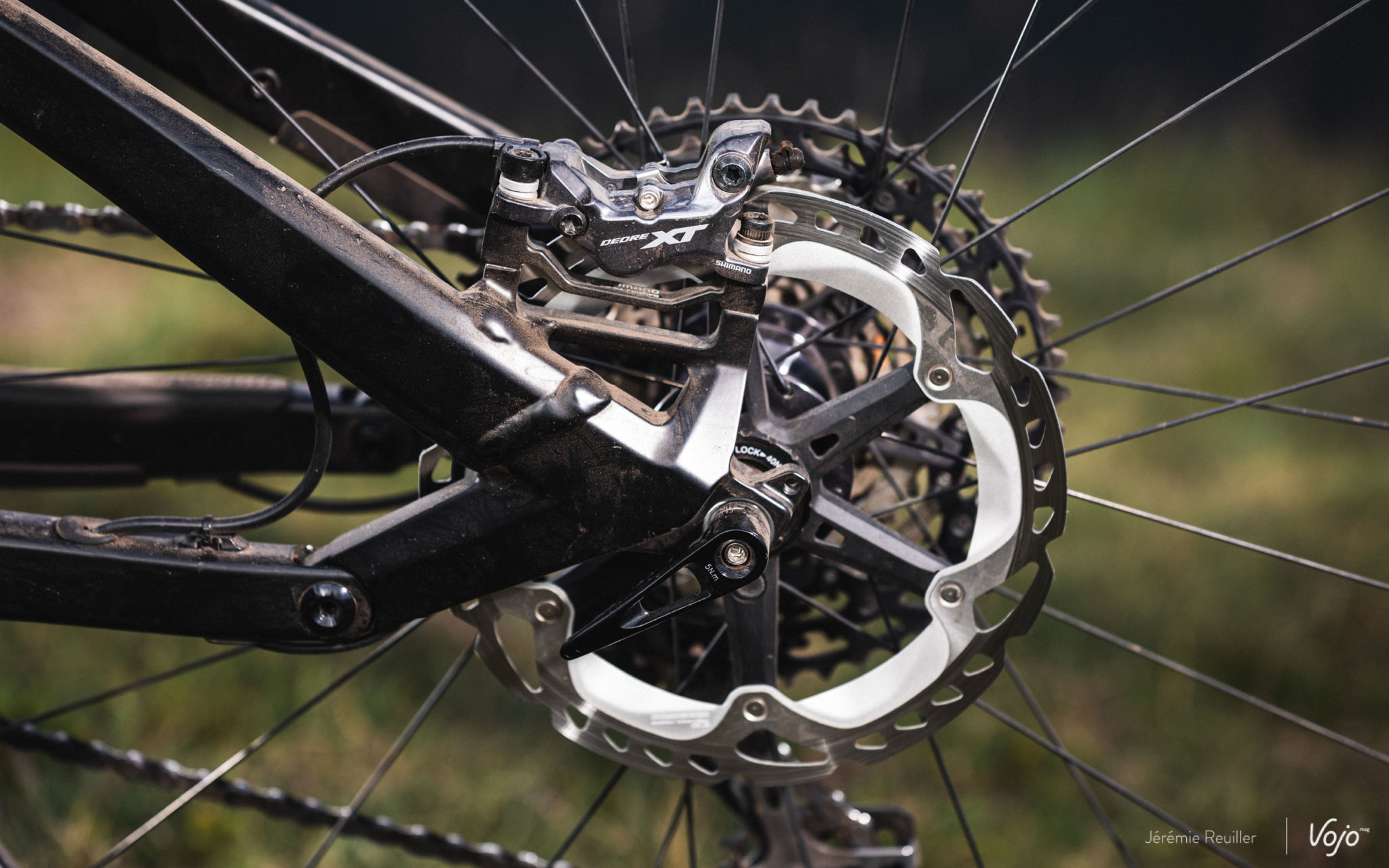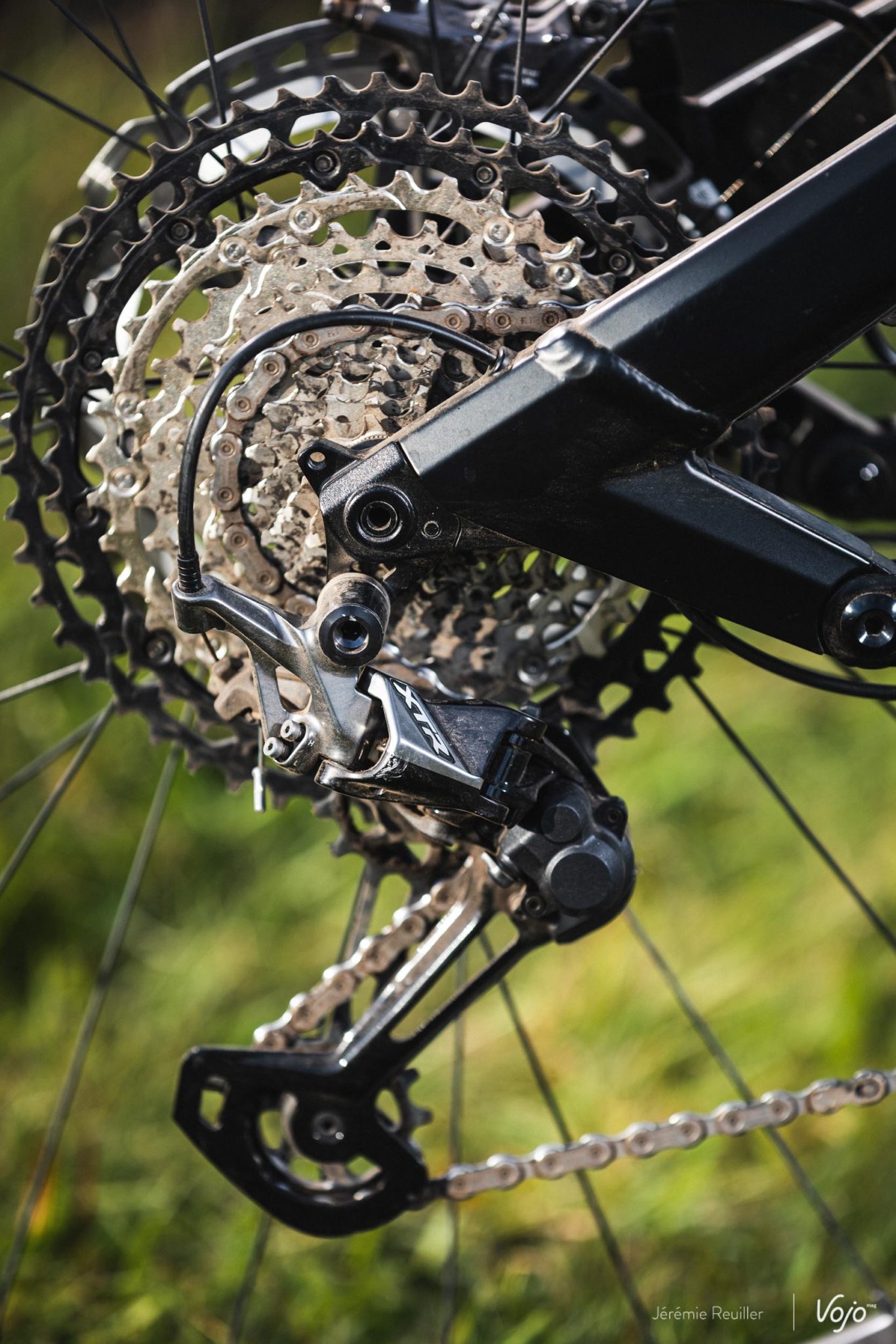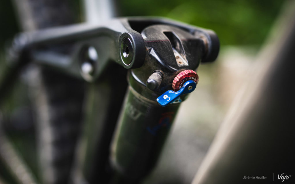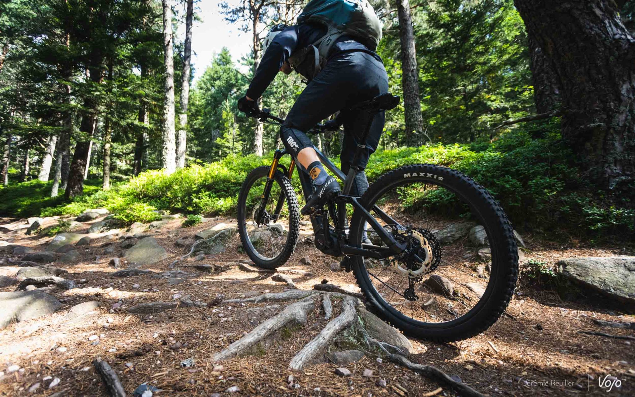 A l’arrière, si le cadre et l’excellente cinématique de suspension ne changent pas, l’amortisseur maison voit ses réglages légèrement revus pour s’adapter au changement de roues et au comportement un poil différent du 29″. Elles permettent de survoler un peu plus les obstacles, mais les grandes roues avec pneus plus fins donnent aussi un ressenti un poil plus « sec » que le 27,5+ qui offre en soi plus d’amorti. Le setup usine de l’amortisseur vient donc à la rescousse pour compenser cela en partie. L’idée est aussi de s’accorder parfaitement au comportement de la nouvelle fourche. On remarque également qu’on dispose d’un levier de blocage… mais la suspension est tellement efficace et raffinée que nous ne nous en sommes jamais servis.
